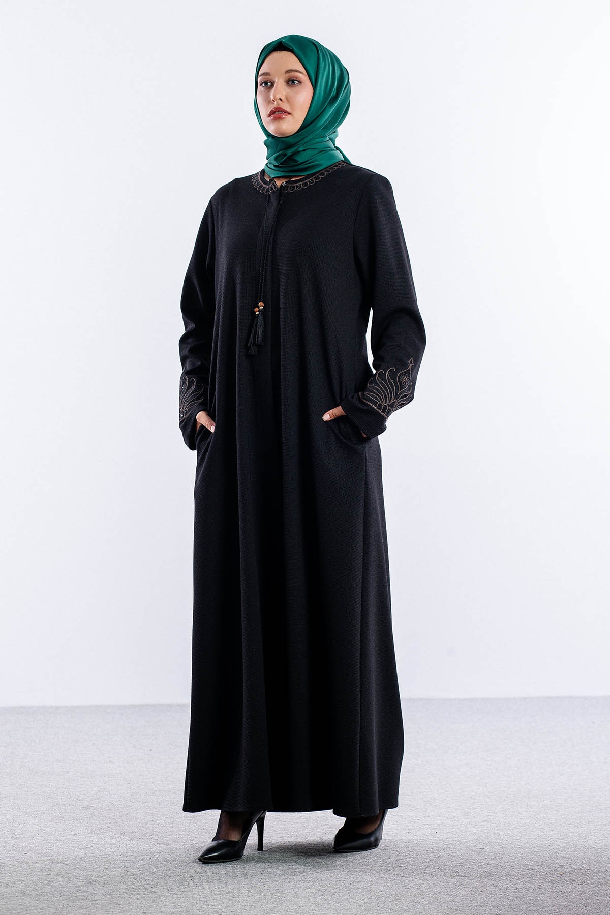 1075 Ferace 46-56 Sakine Luna Kis - Siyah - 1