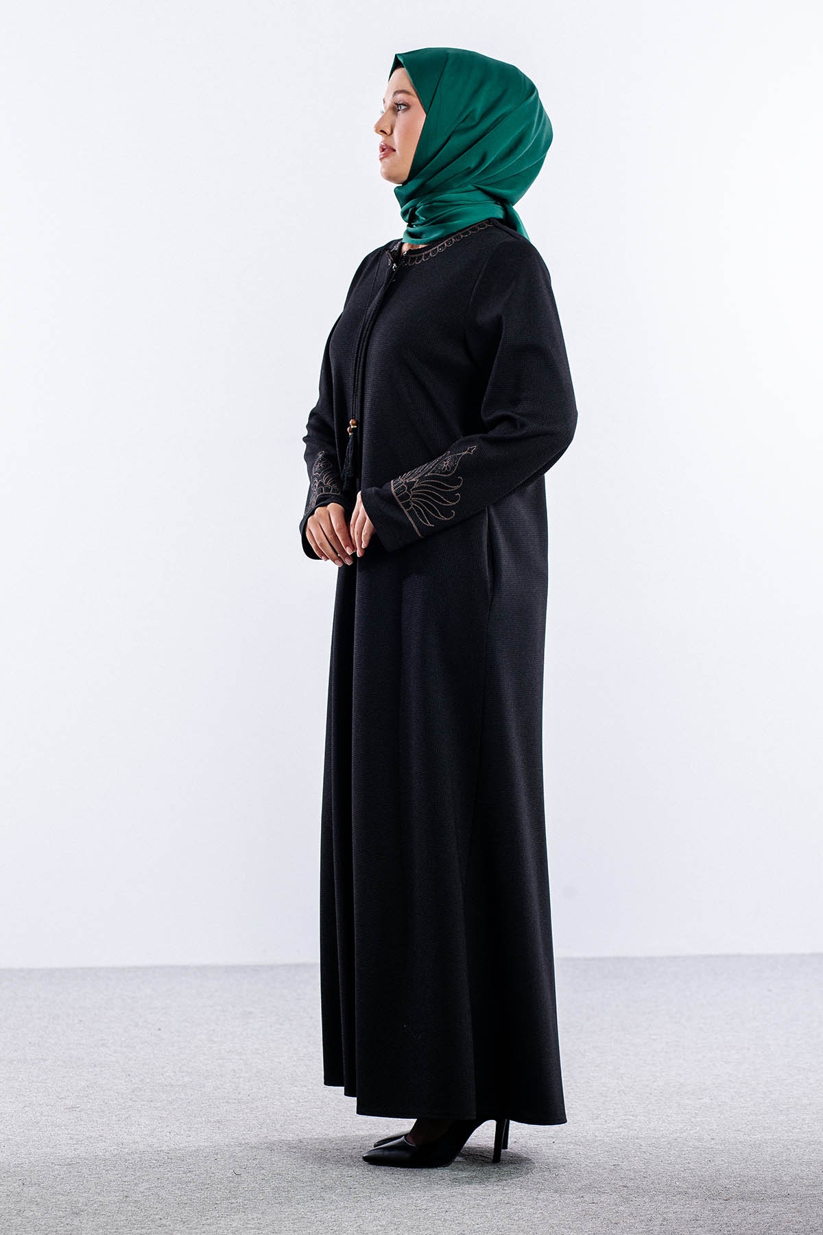 1075 Ferace 46-56 Sakine Luna Kis - Siyah - 4