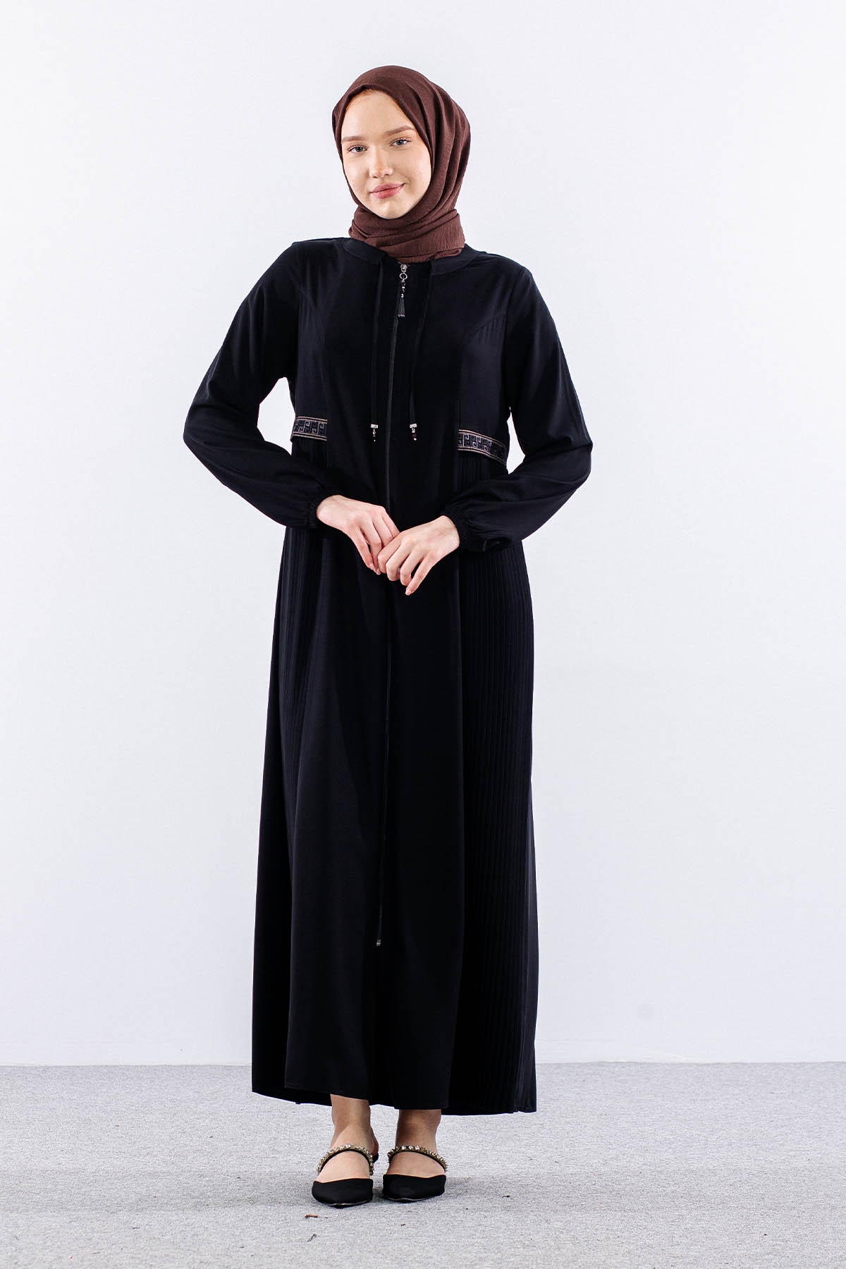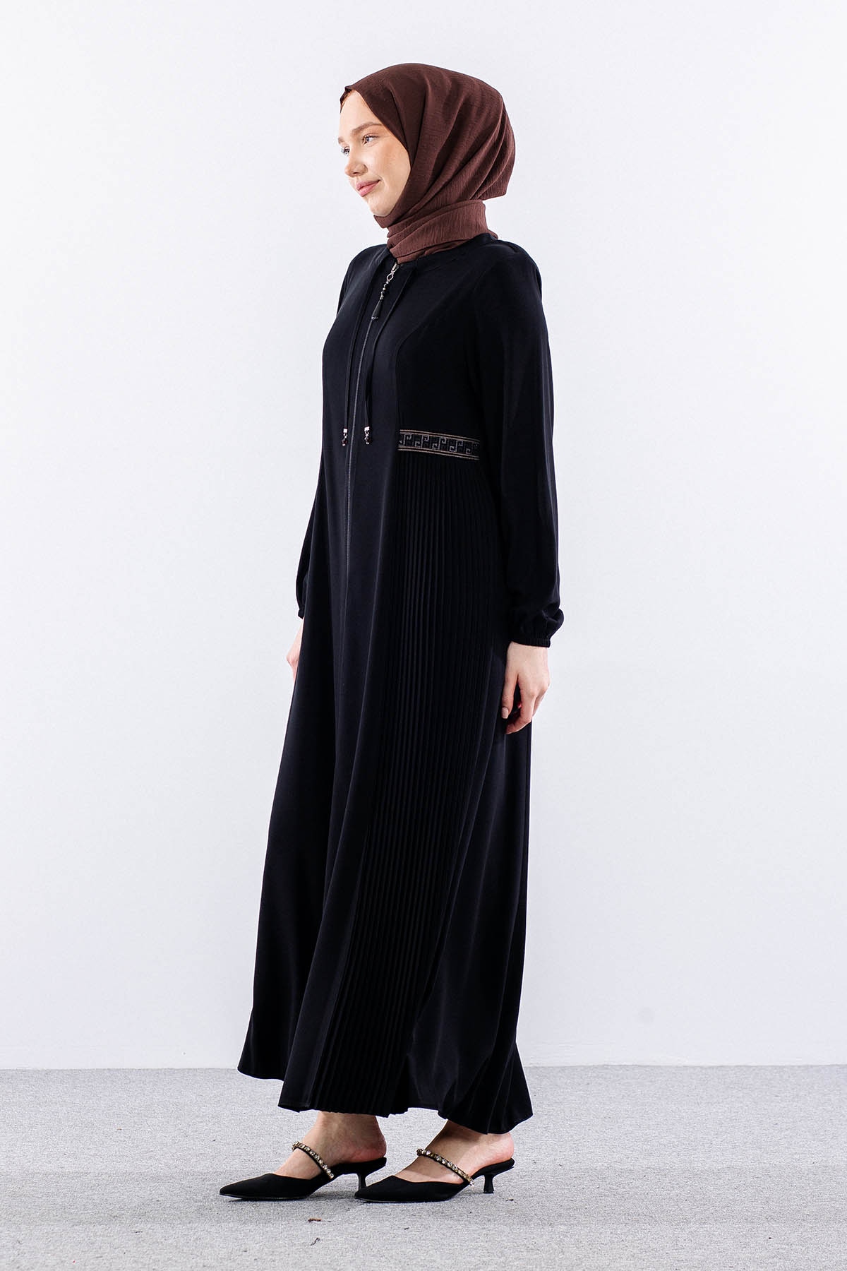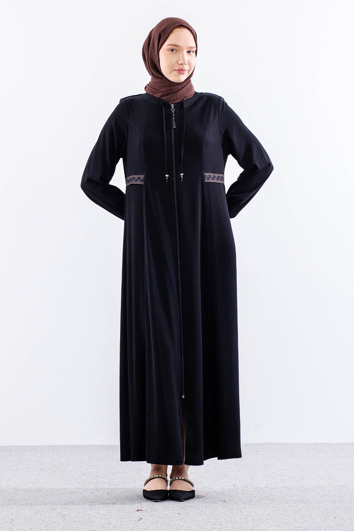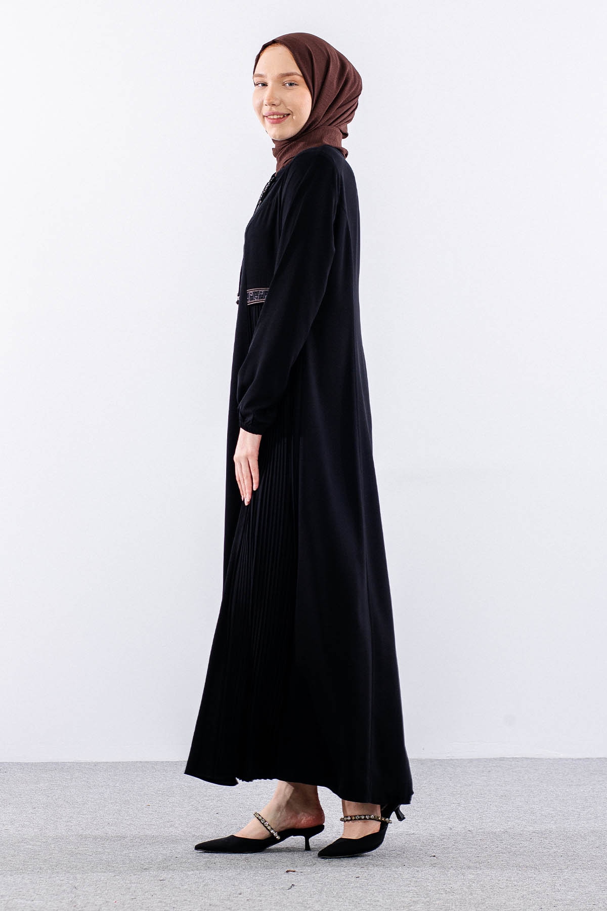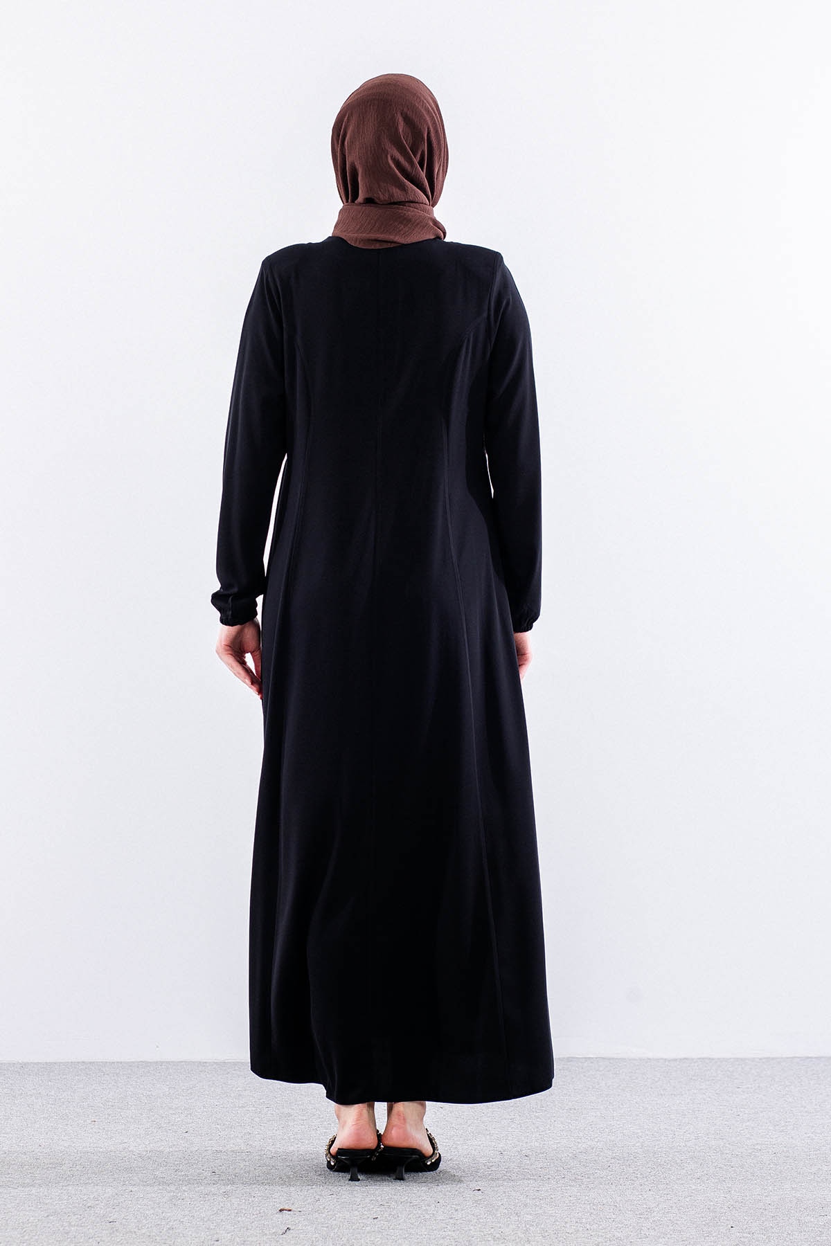 1114 Ferace 44-50 İzel Krep Yaz Kumas - Siyah - 4