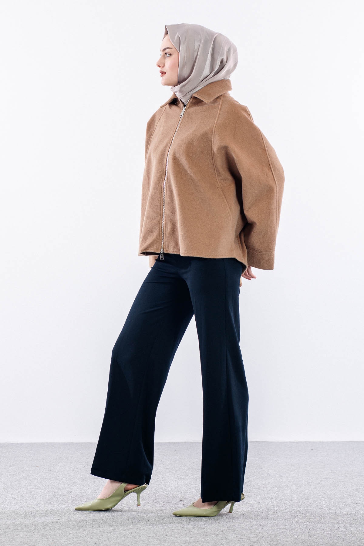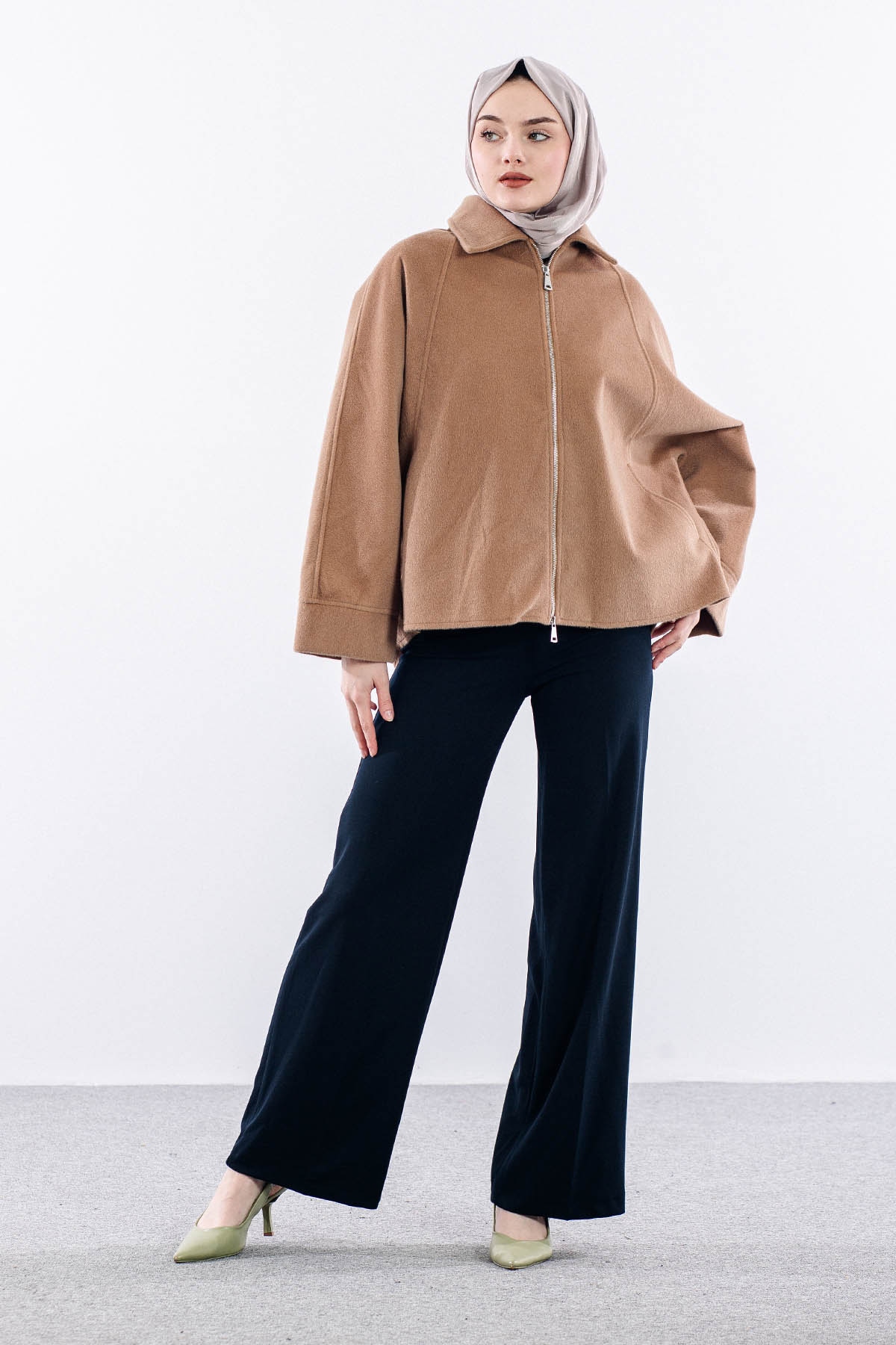 1215-00 Kisa Triko Ceket Tek - Camel - 2