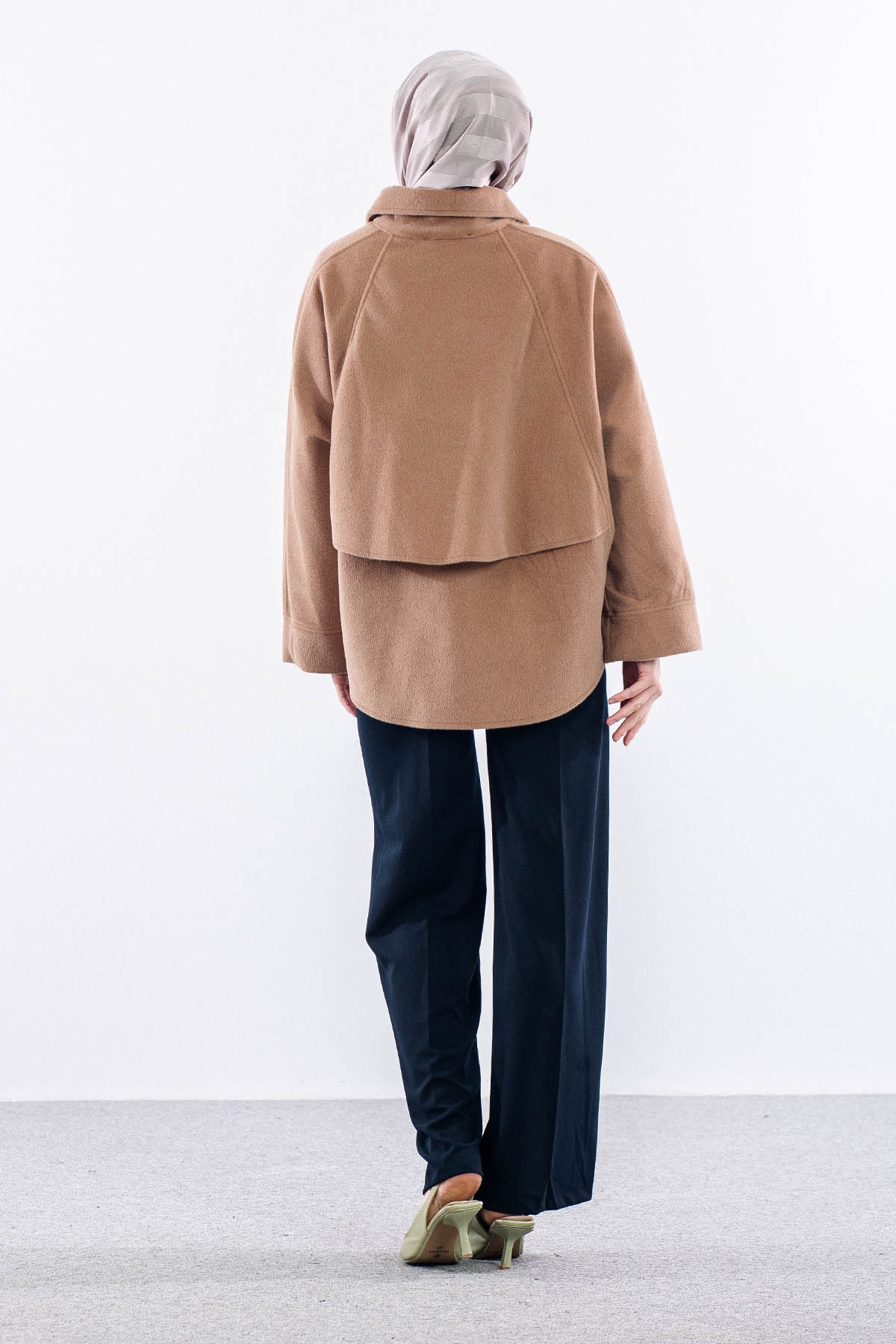 1215-00 Kisa Triko Ceket Tek - Camel - 4
