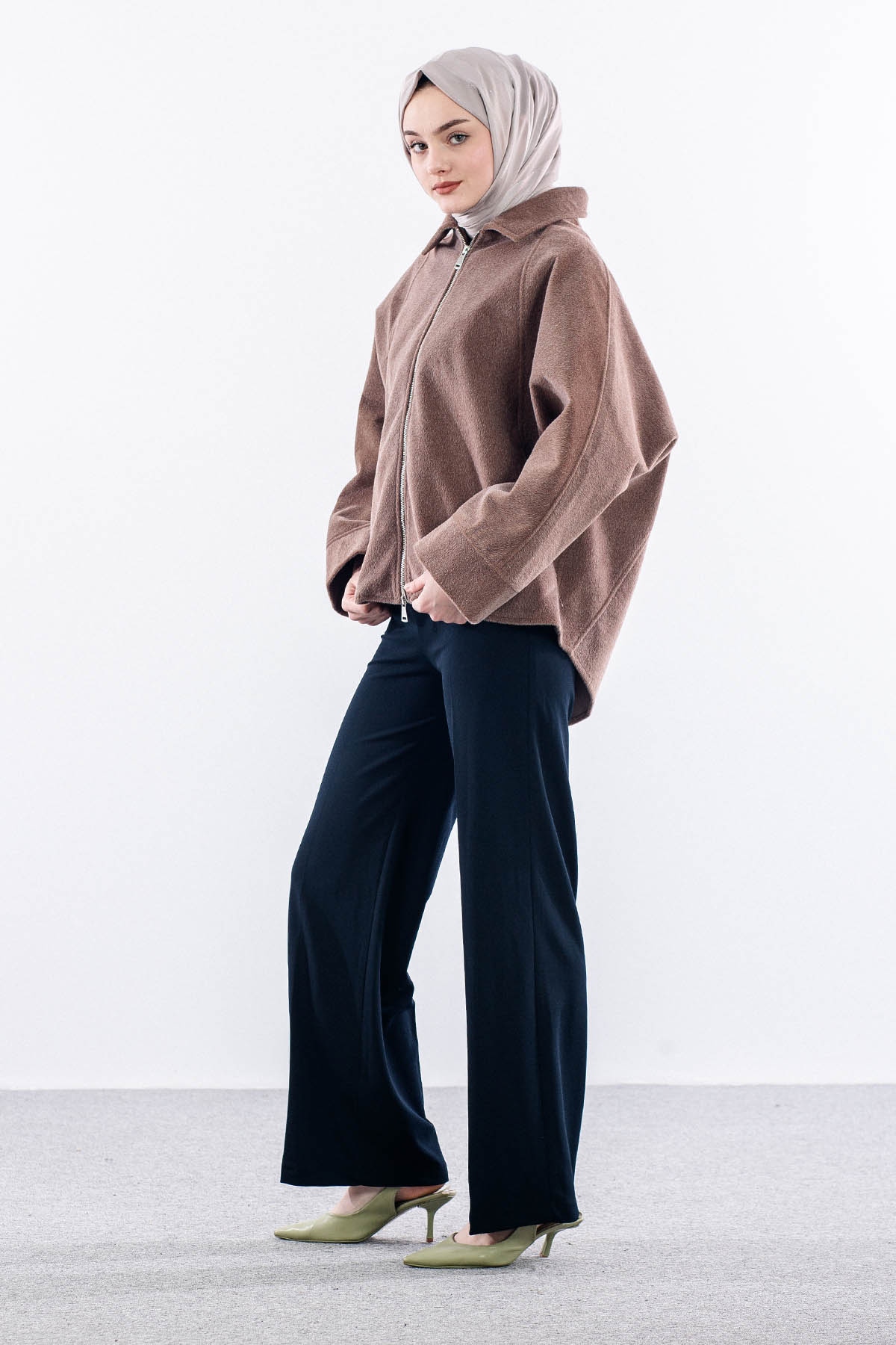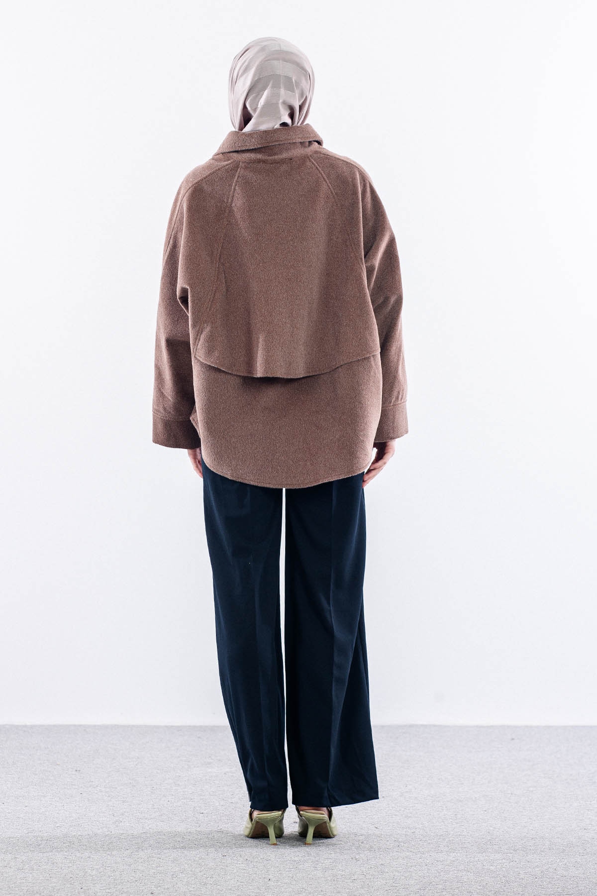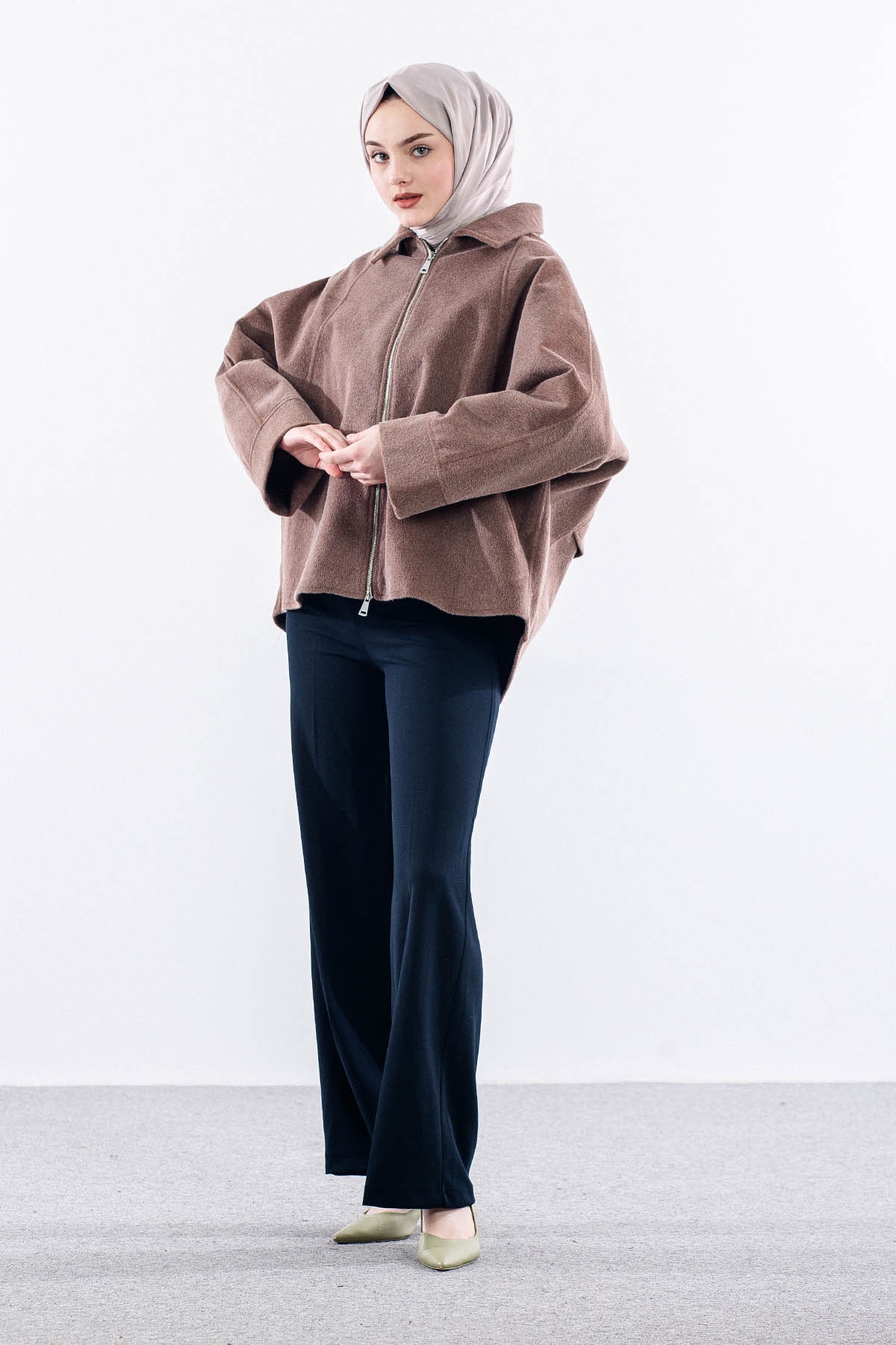 1215-00 Kisa Triko Ceket Tek - Kahve - 3