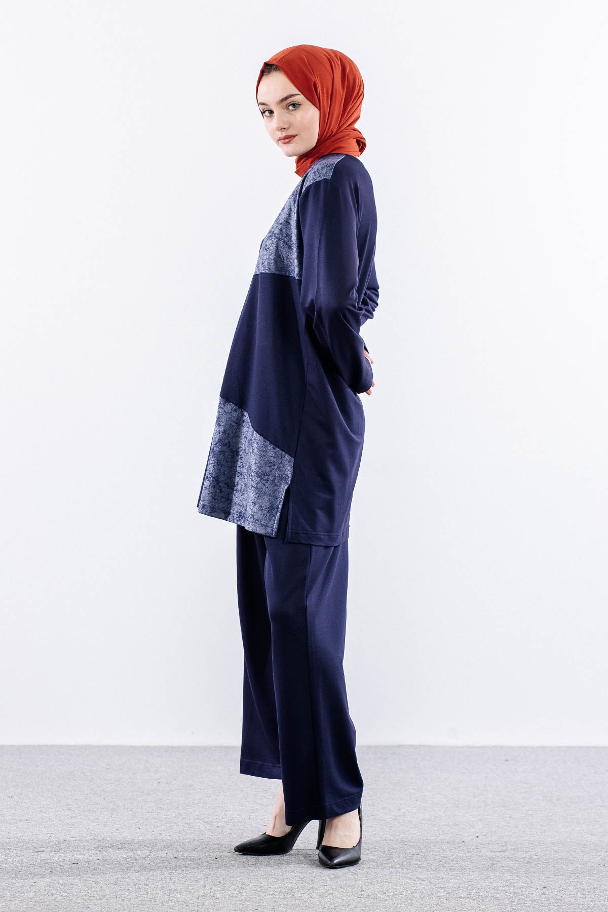 1404 Takim 44-46-48-50 Kare Desen - Lacivert - 1