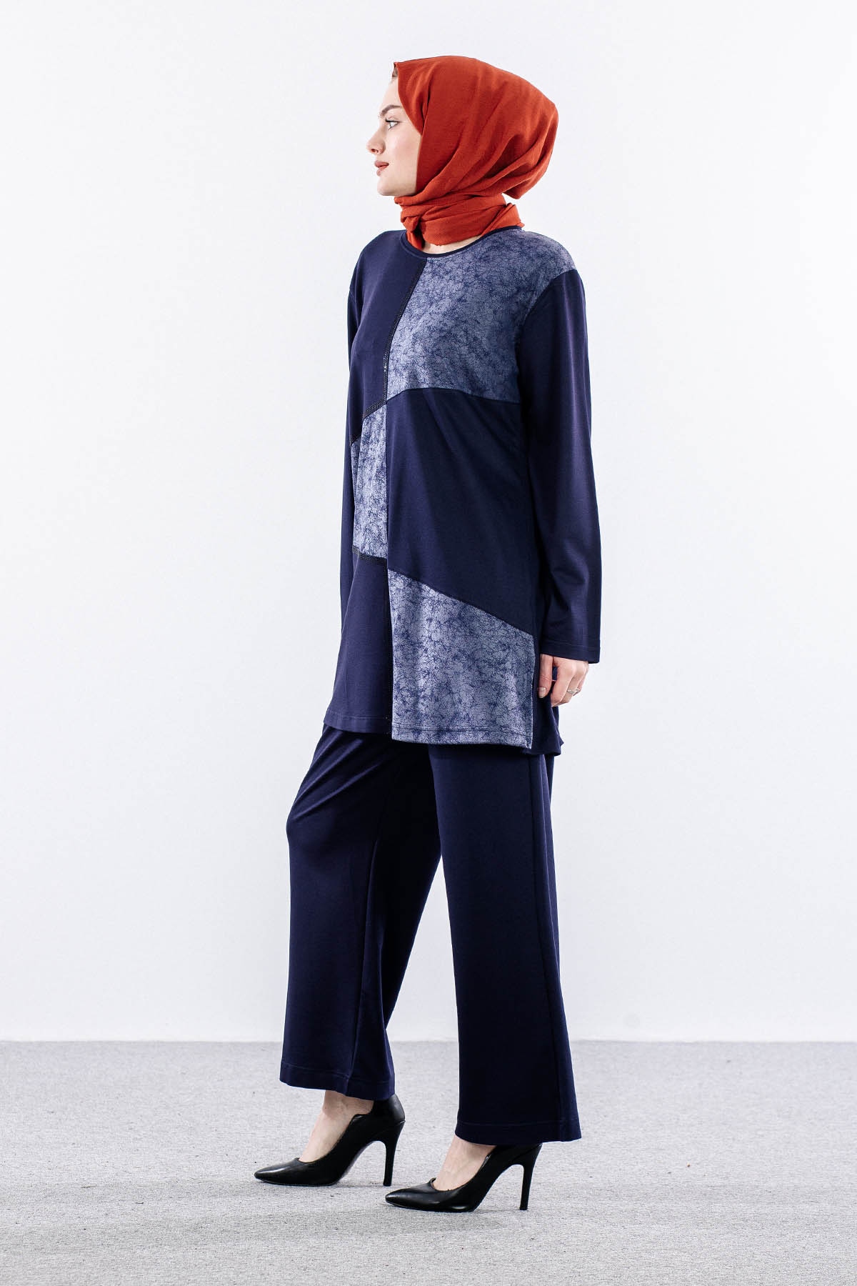 1404 Takim 44-46-48-50 Kare Desen - Lacivert - 5