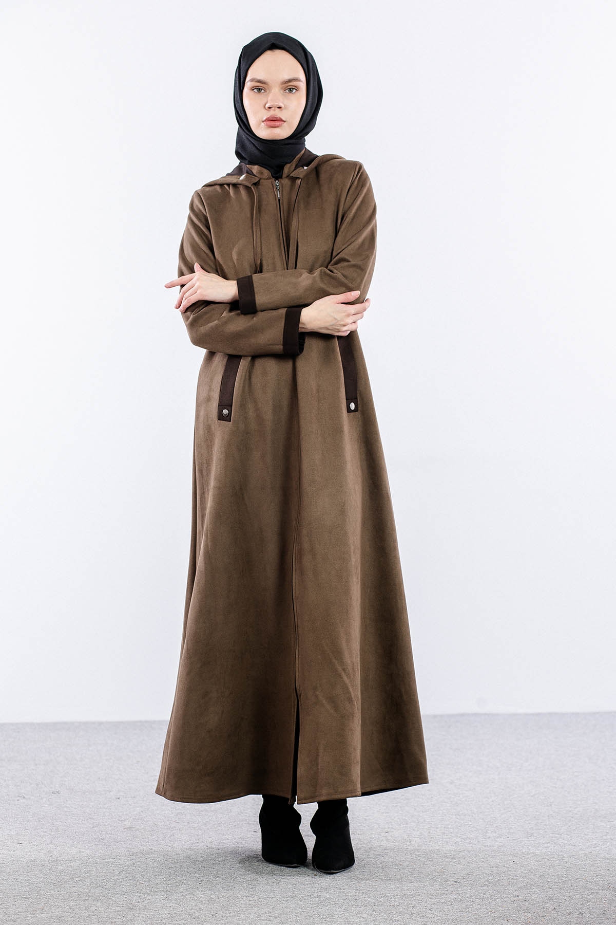 2158 Ferace 40-50 Suet Kapsonlu - Haki - 1