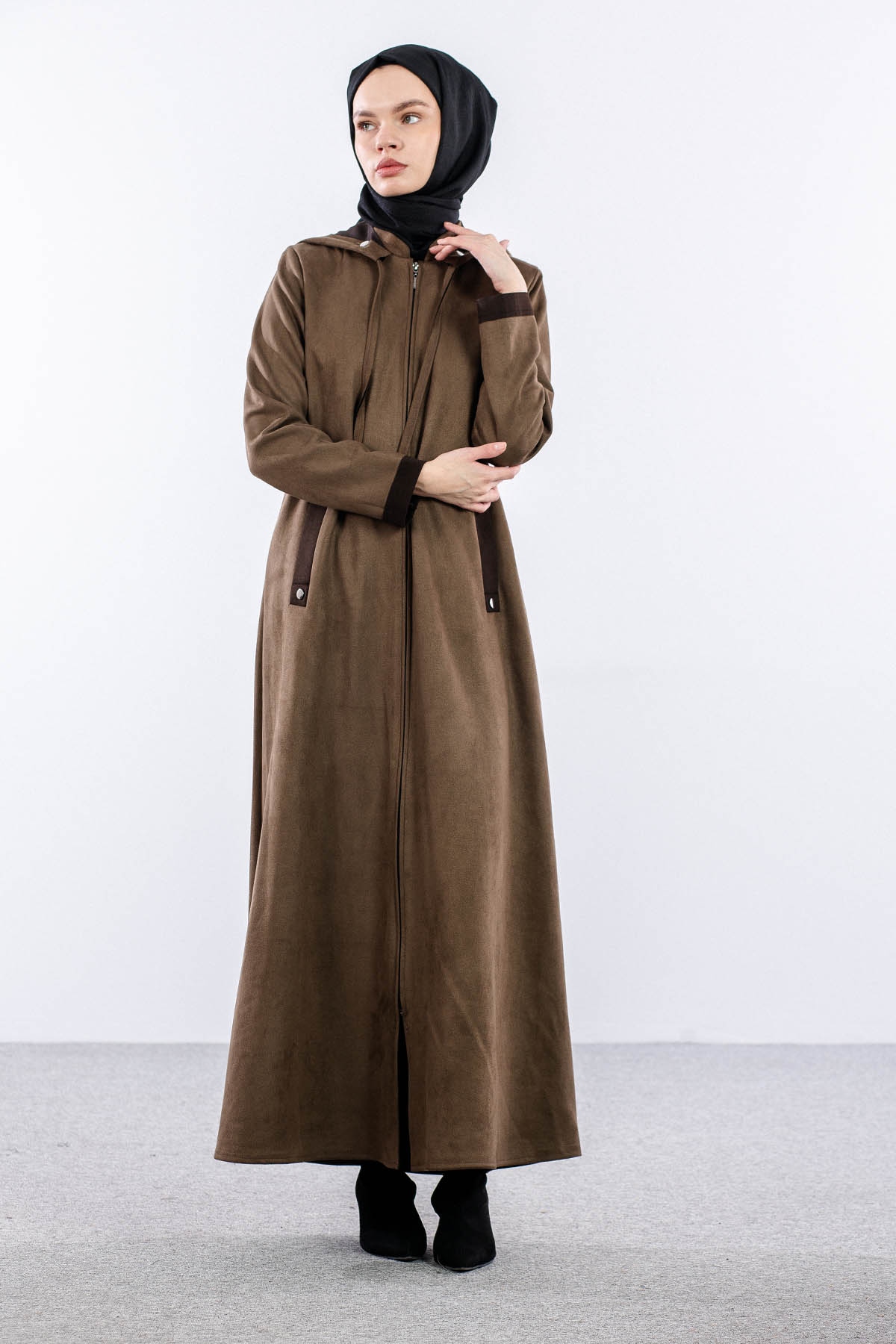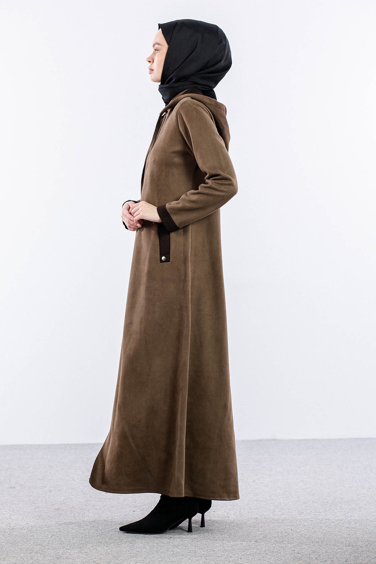 2158 Ferace 40-50 Suet Kapsonlu - Haki - 3