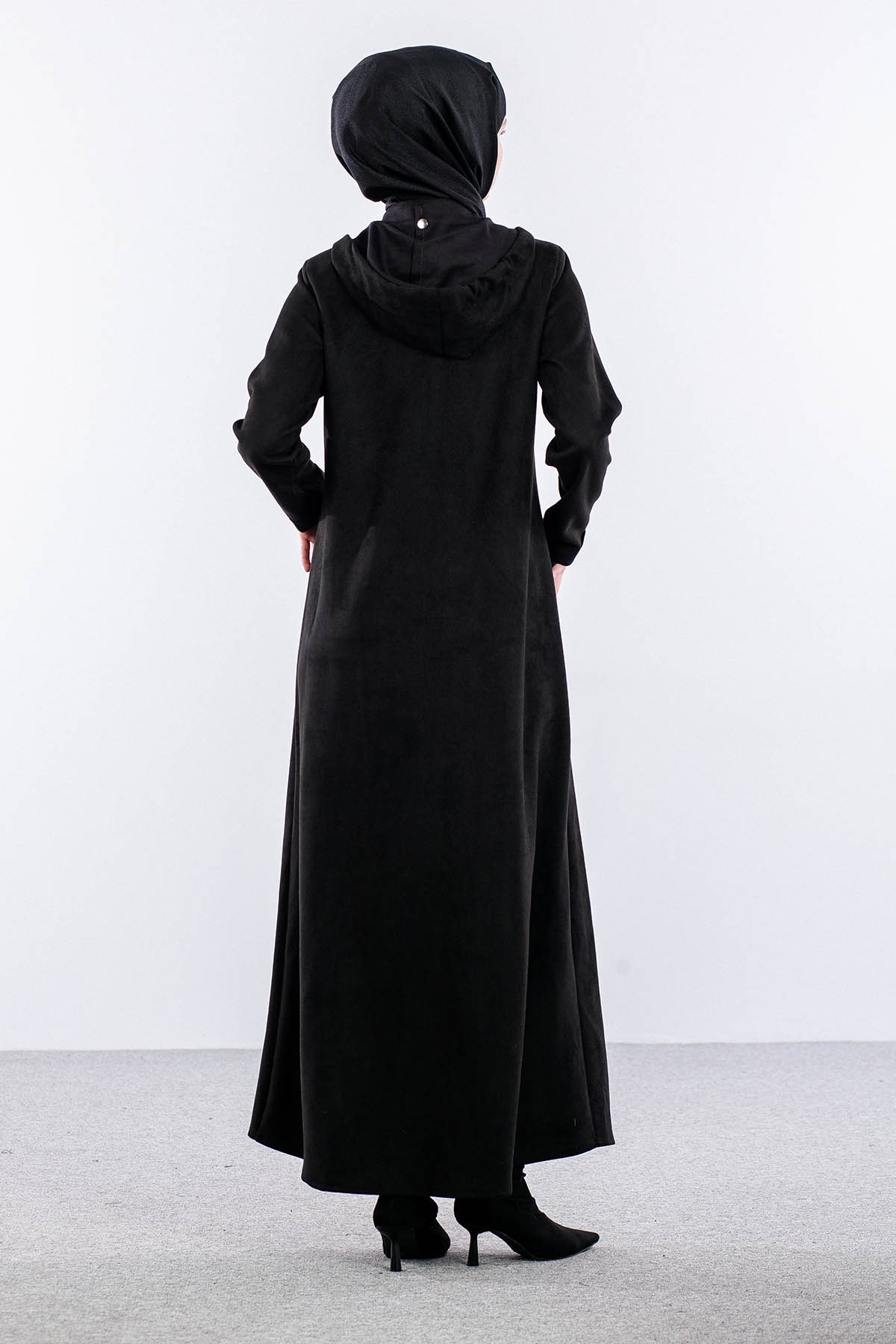 2158 Ferace 40-50 Suet Kapsonlu - Siyah - 5
