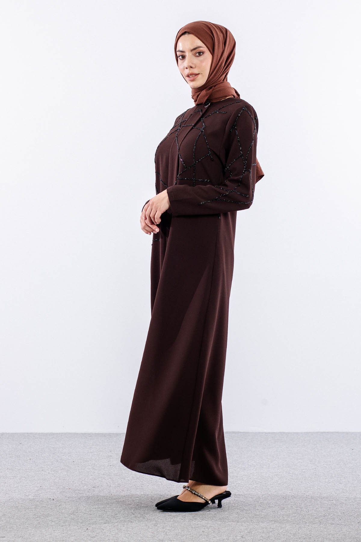 2263 Ferace 42-52 şık Model Petek Yaz - Kahve - 1