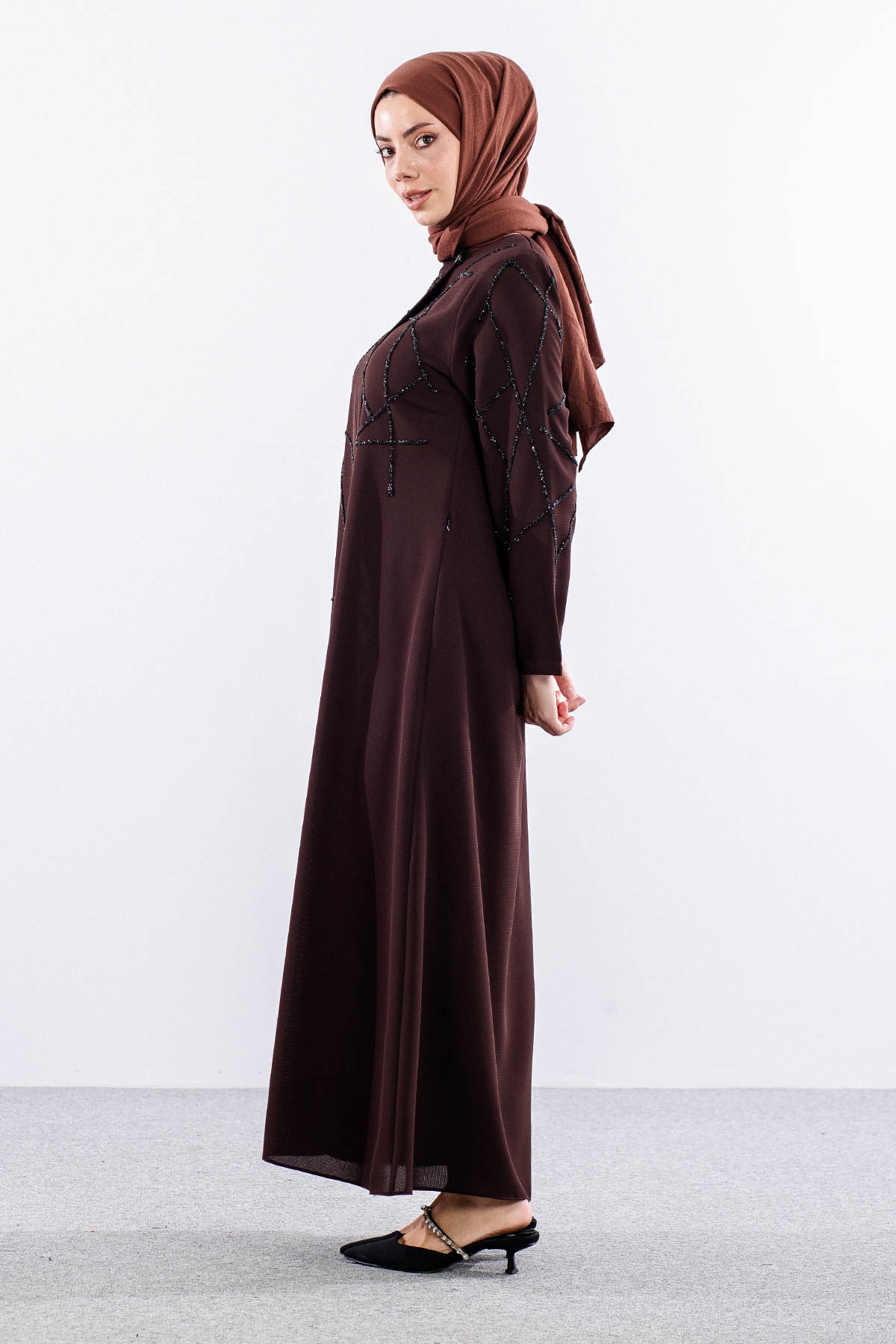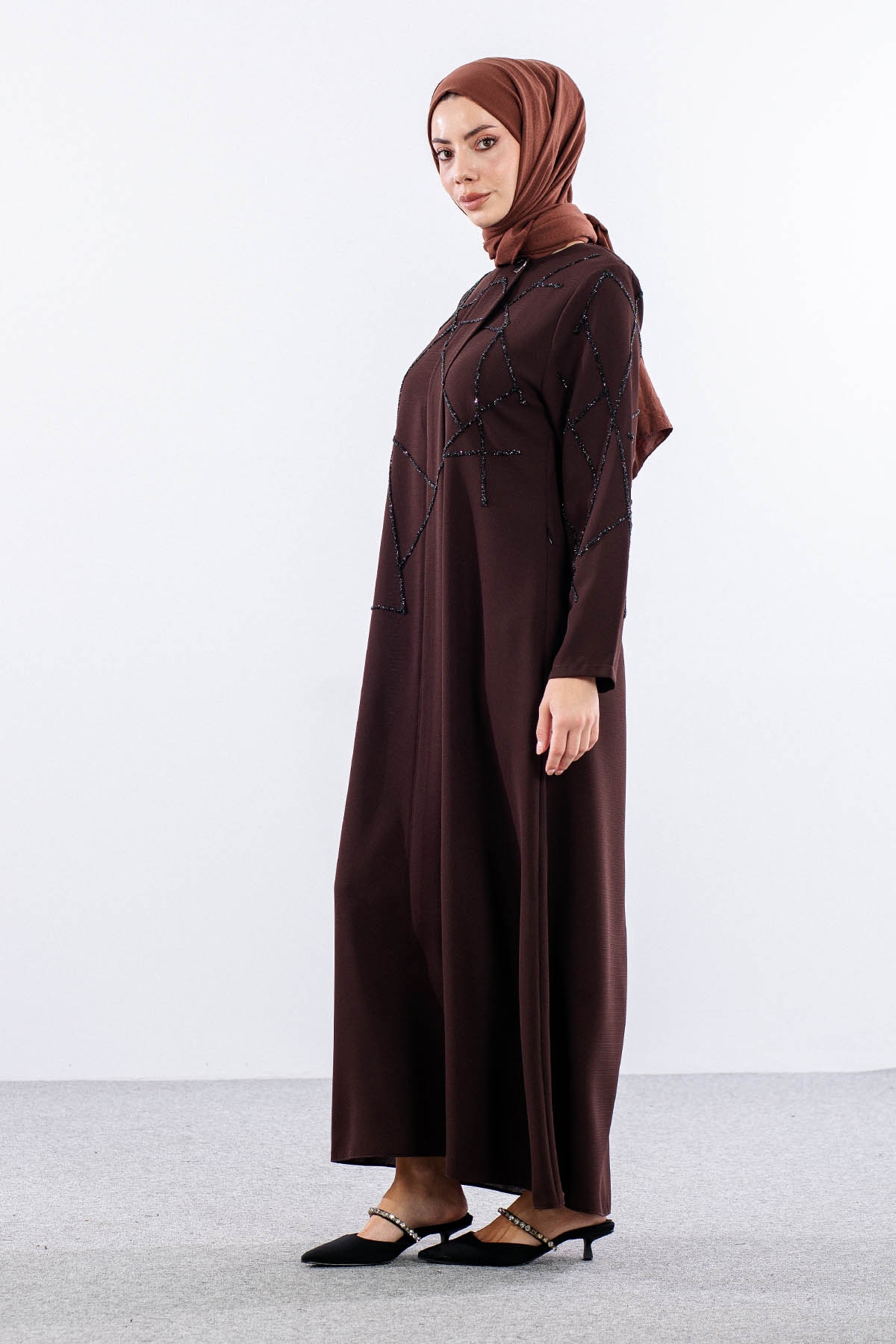 2263 Ferace 42-52 şık Model Petek Yaz - Kahve - 3
