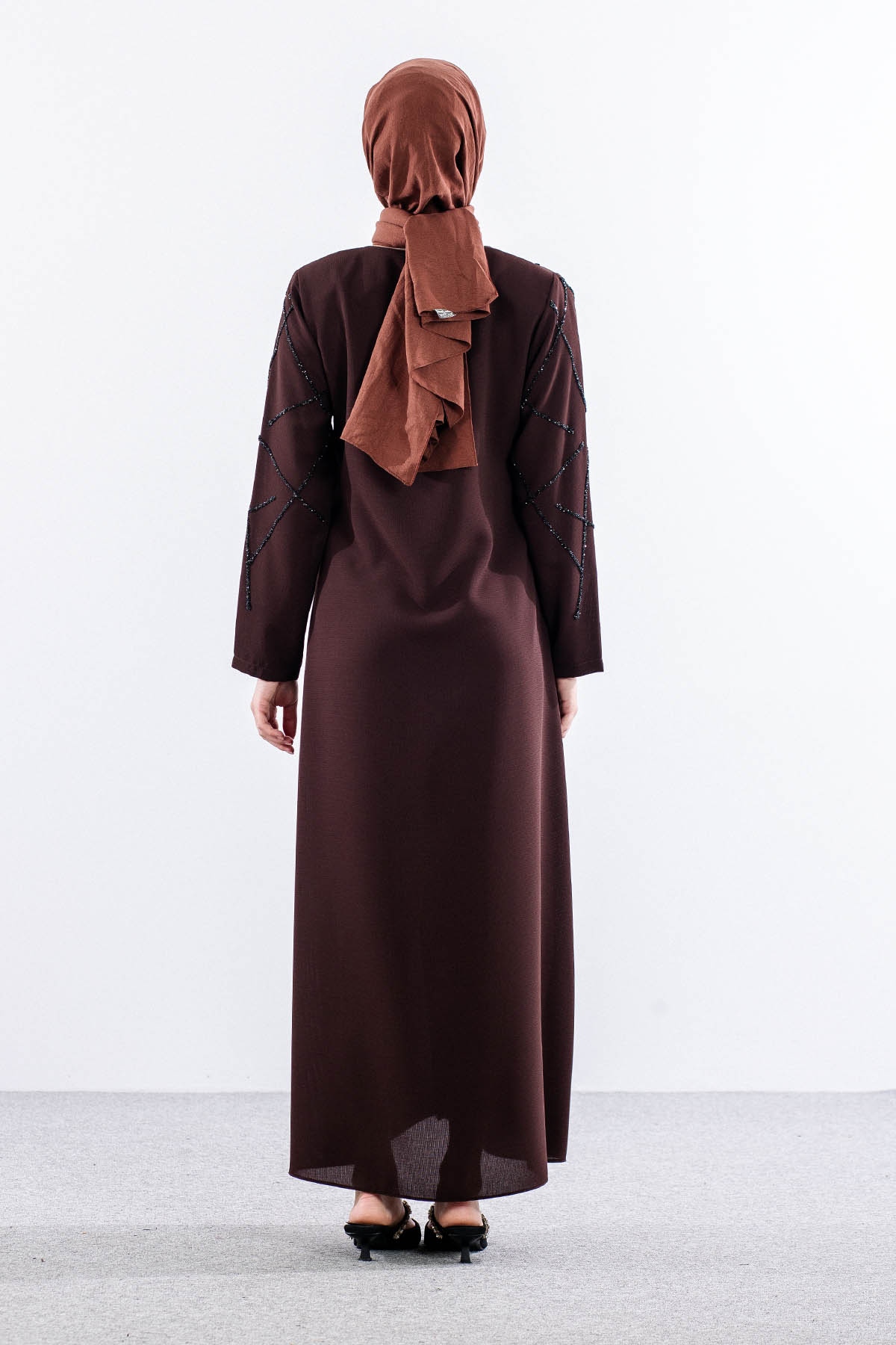 2263 Ferace 42-52 şık Model Petek Yaz - Kahve - 4