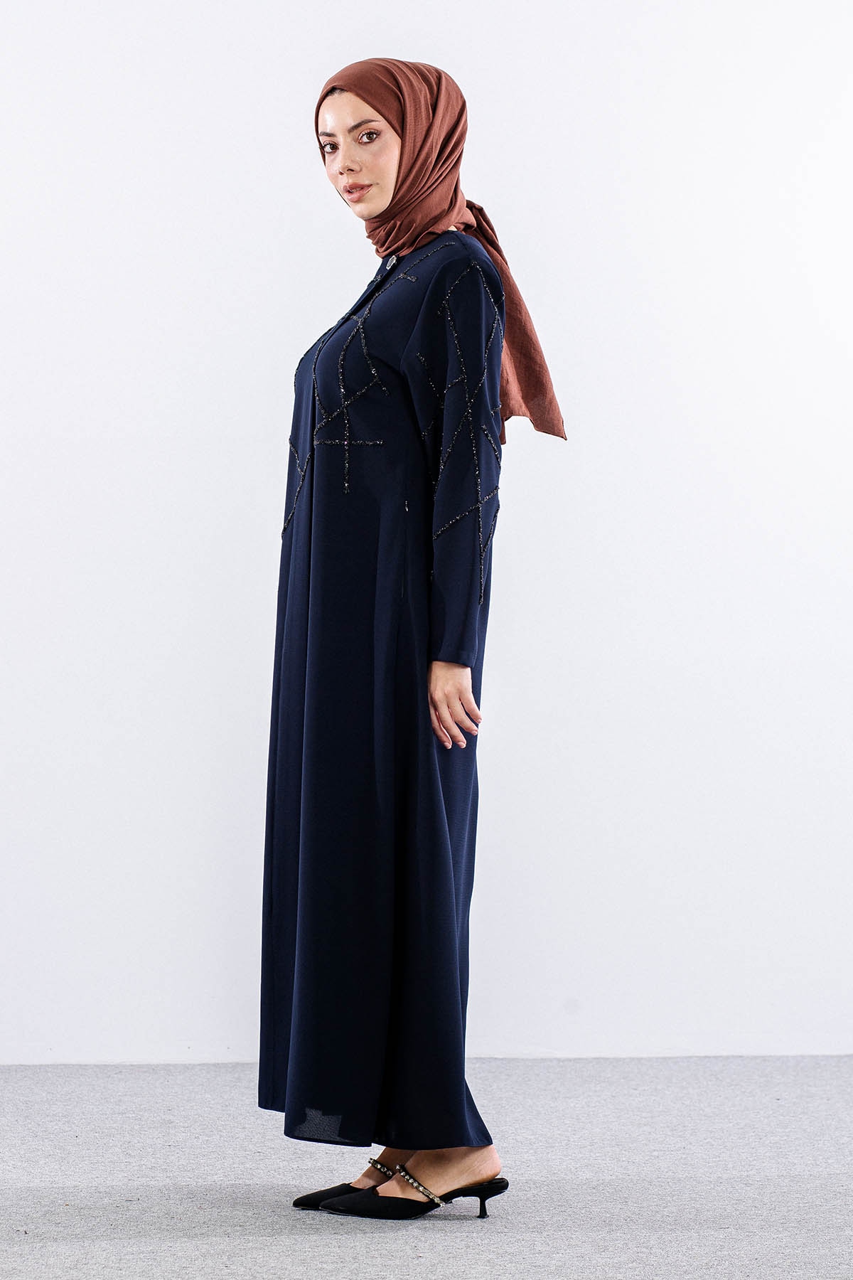 2263 Ferace 42-52 şık Model Petek Yaz - Lacivert - 3