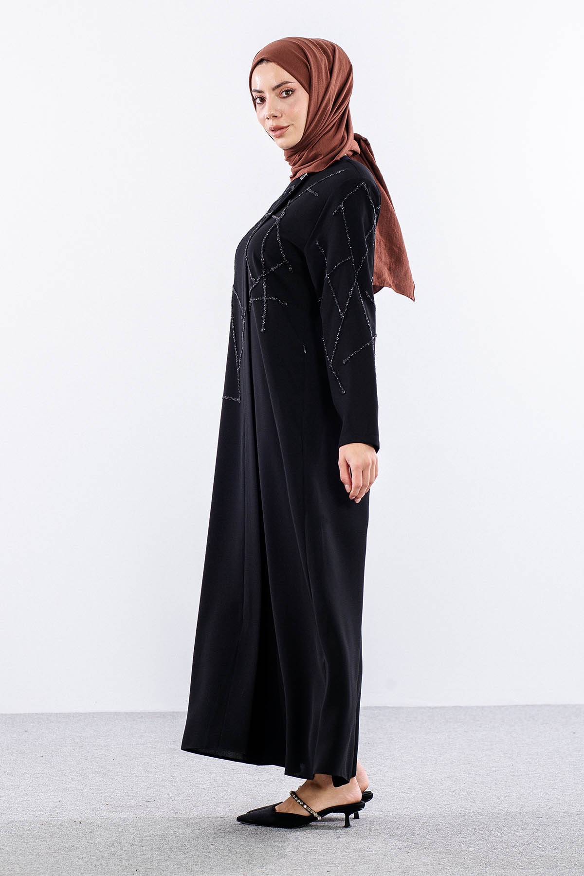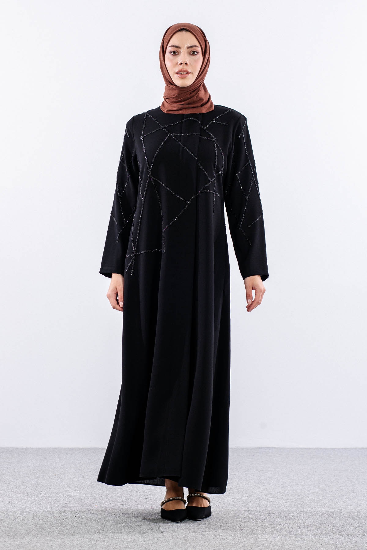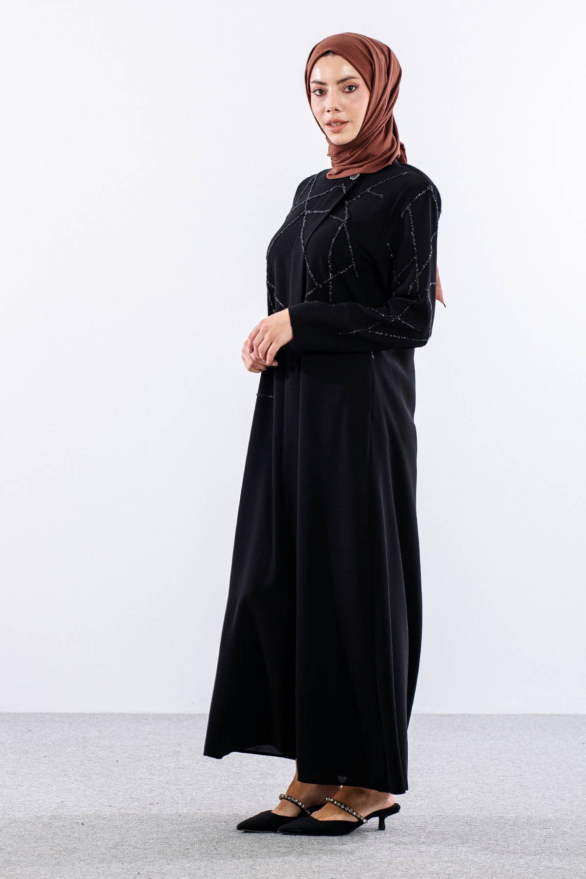 2263 Ferace 42-52 şık Model Petek Yaz - Siyah - 4