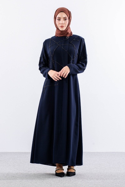 2263 Ferace 42-52 şık Model Petek Yaz - Siyah - 5