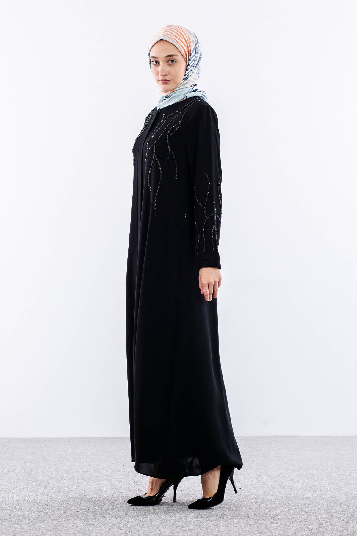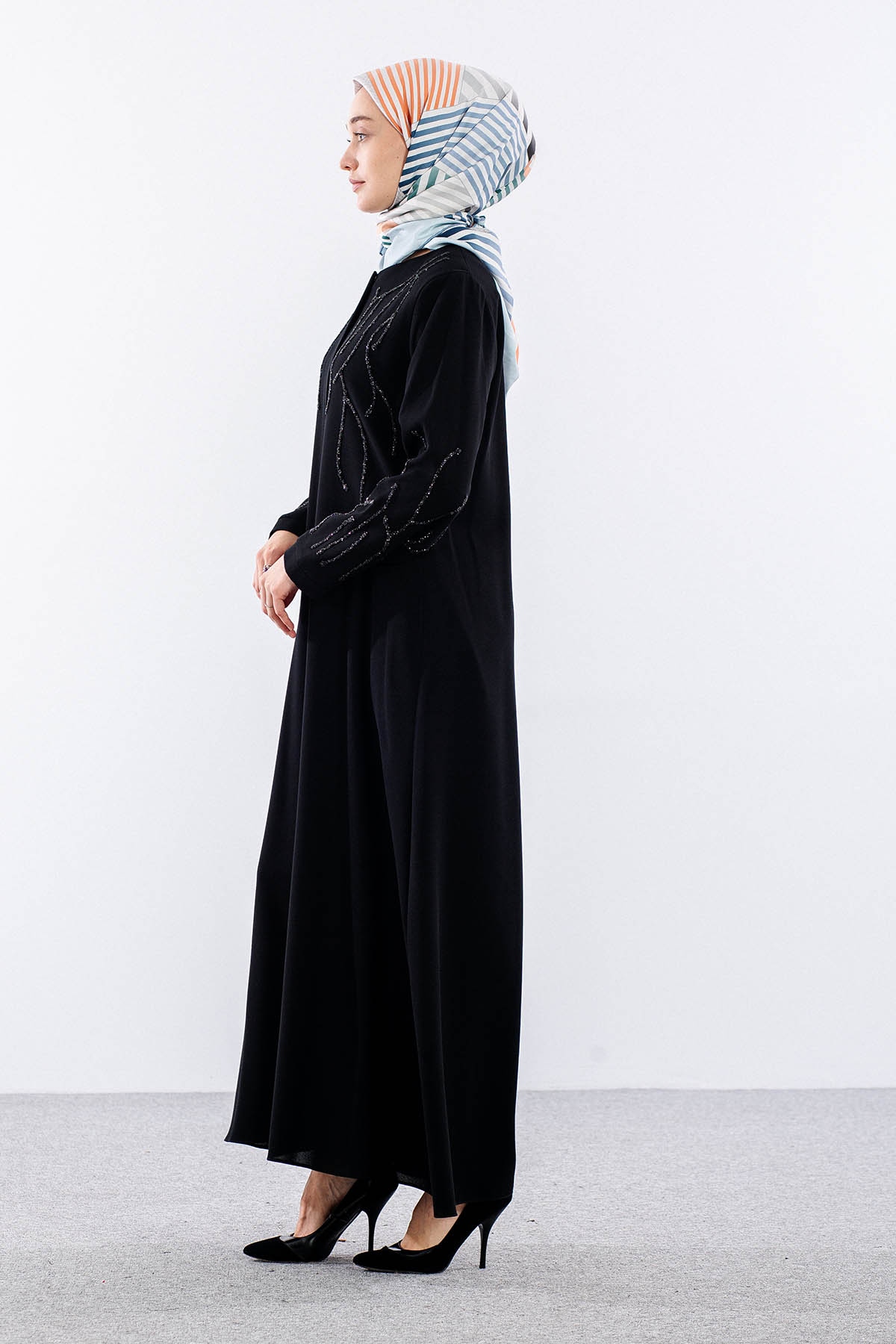 2273 Ferace 42-52 Kol Isli şik Detay - Siyah - 2