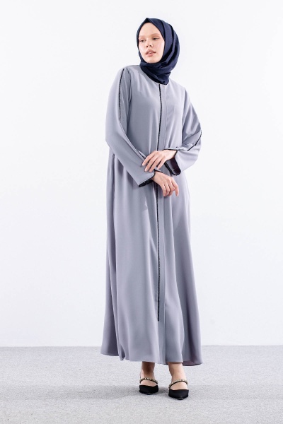 2302 şik Ferace 42-52 Boncuk Biye Detay - Fume - 1