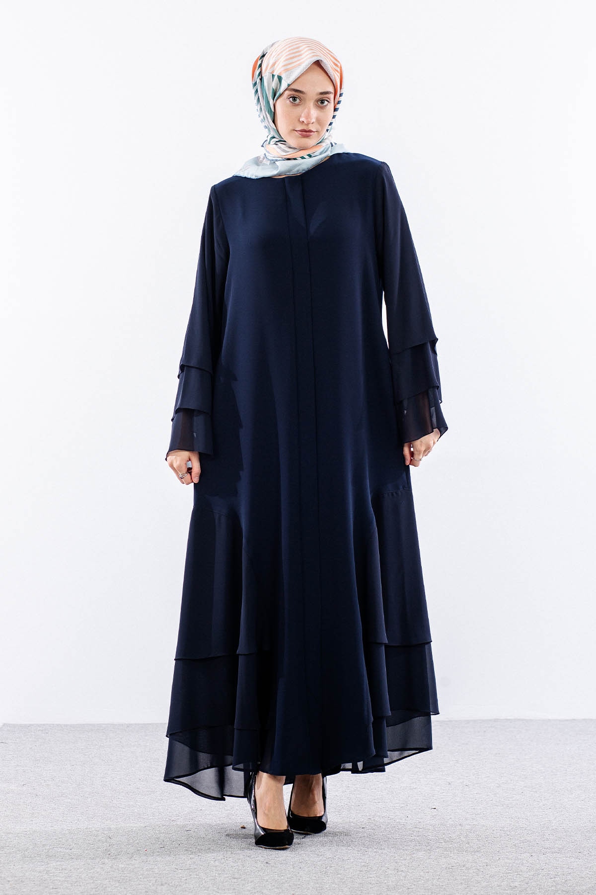 2304 Ferace 42-52 Sıfon Detay Katlı Yaz - Lacivert - 1