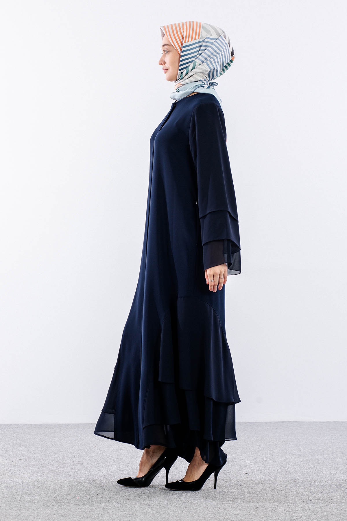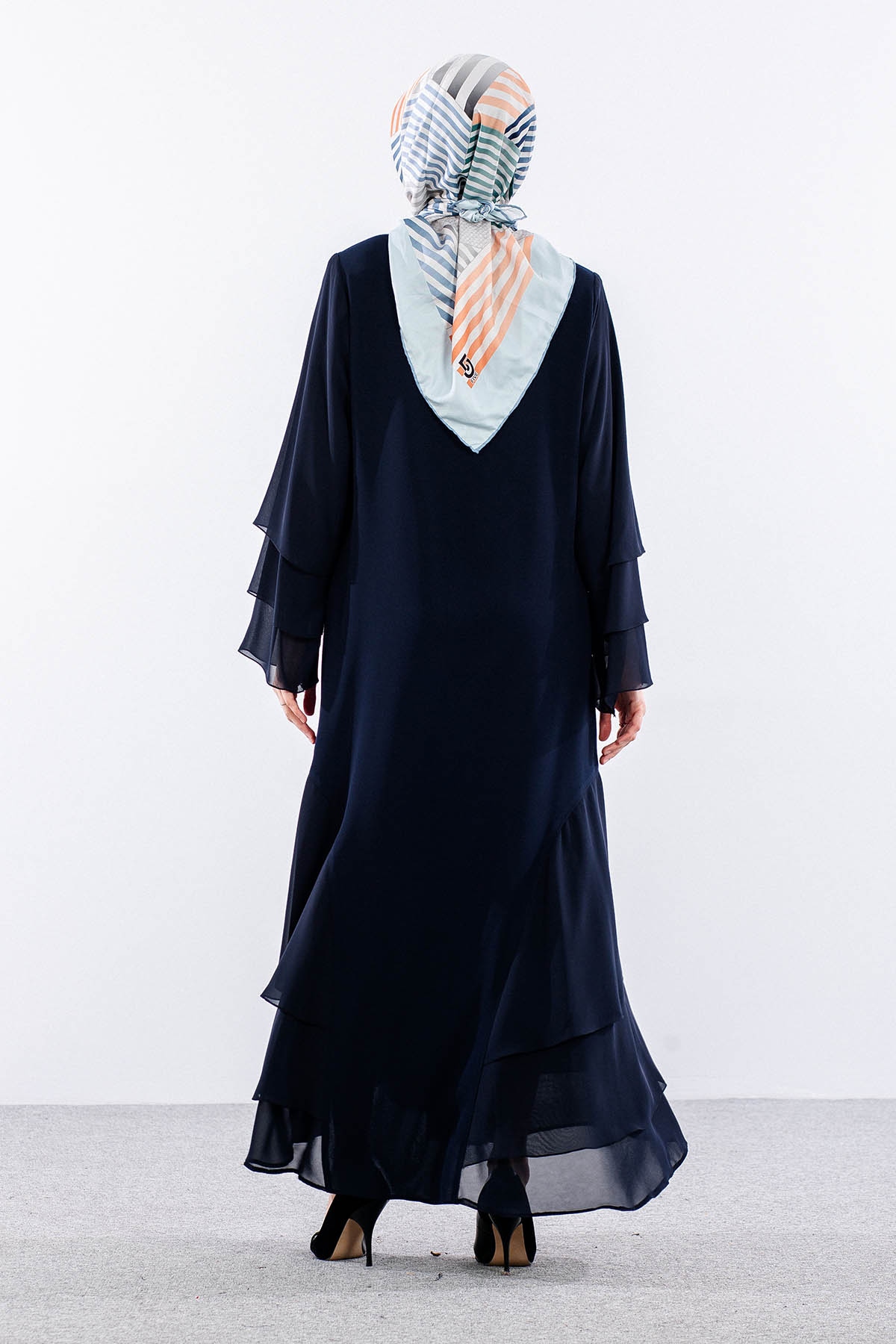 2304 Ferace 42-52 Sıfon Detay Katlı Yaz - Lacivert - 3
