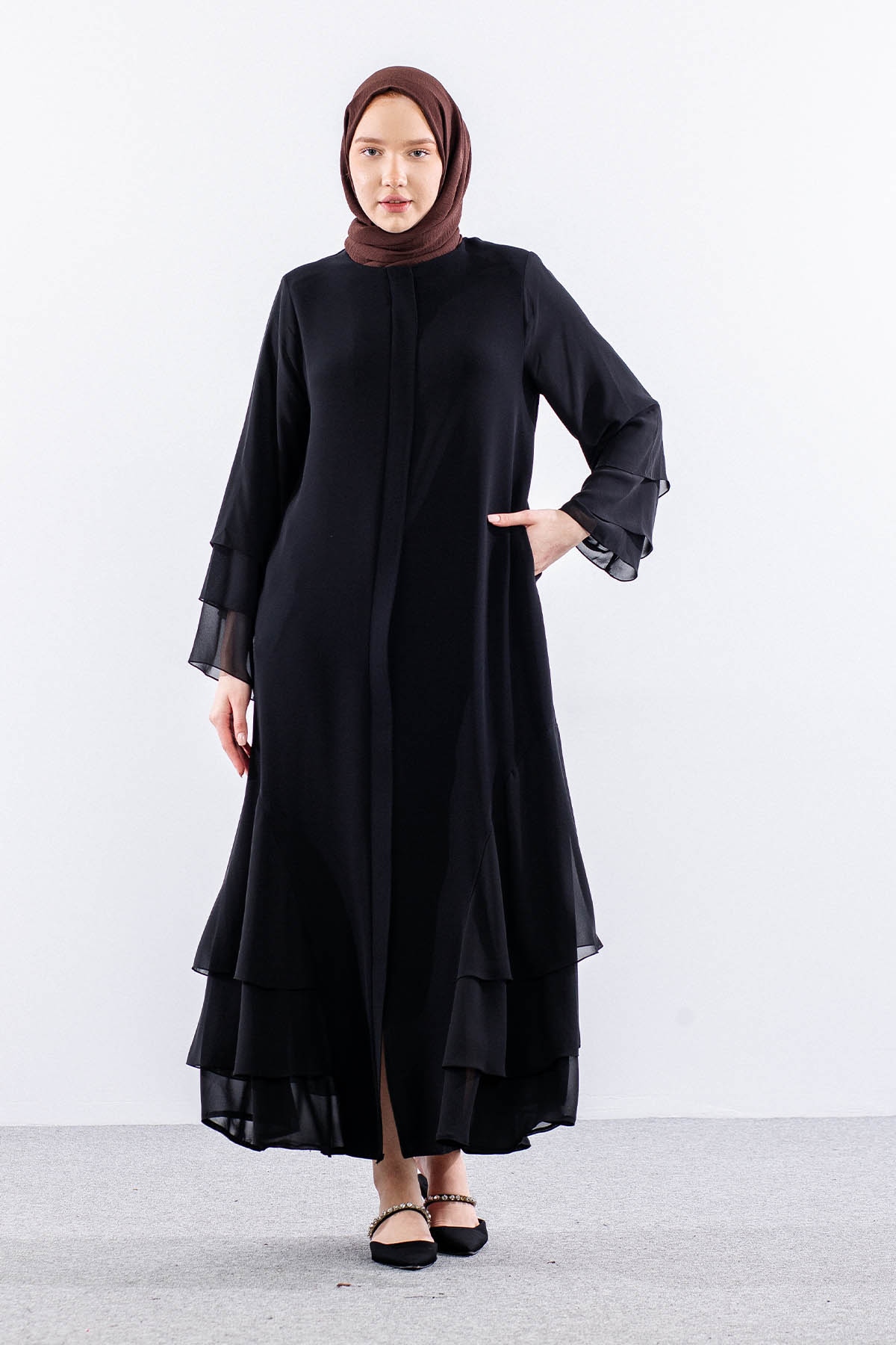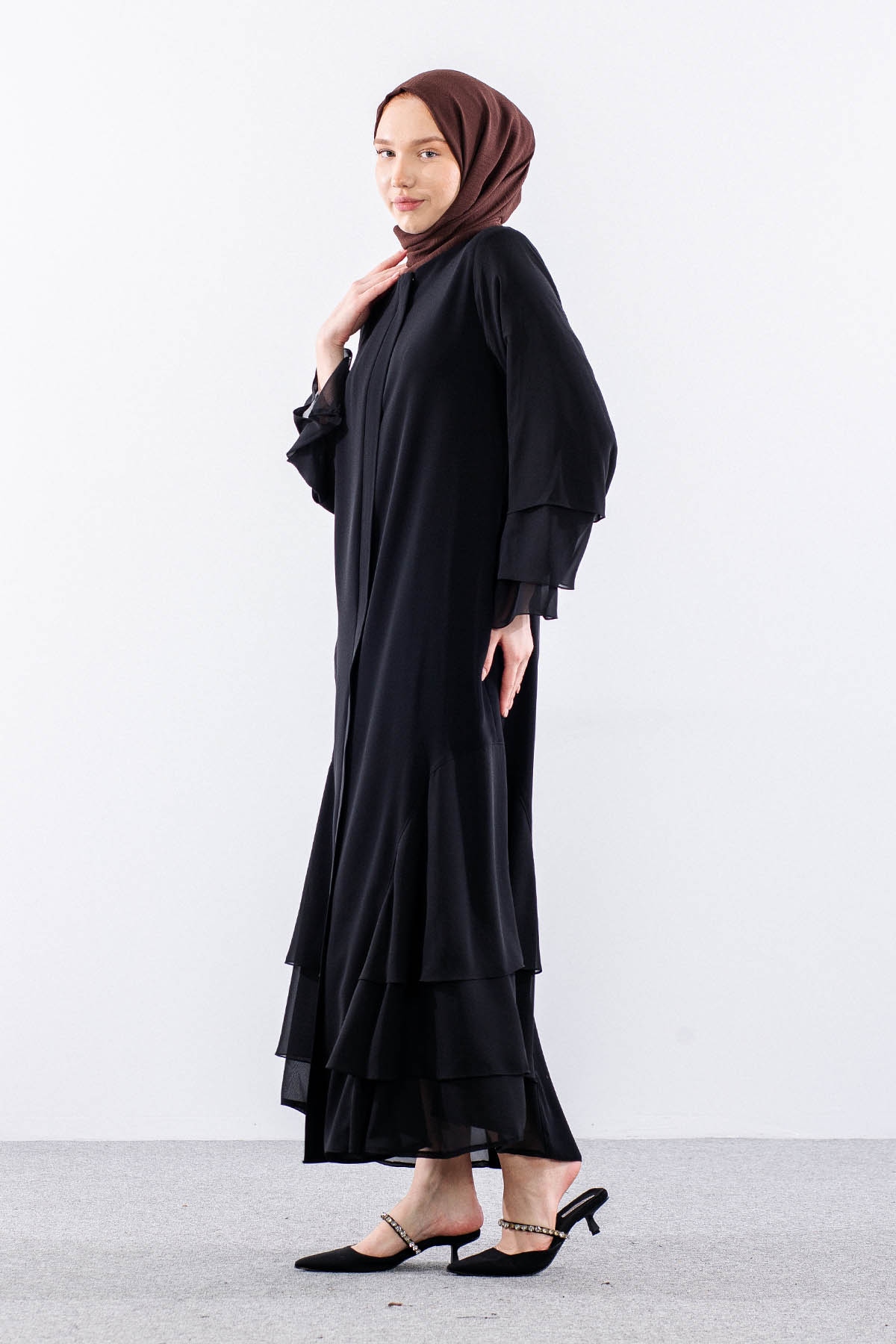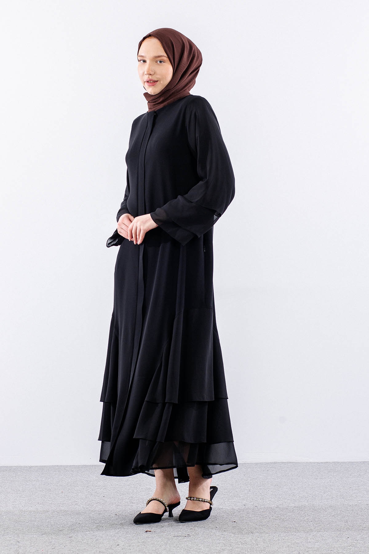 2304 Ferace 42-52 Sıfon Detay Katlı Yaz - Siyah - 1