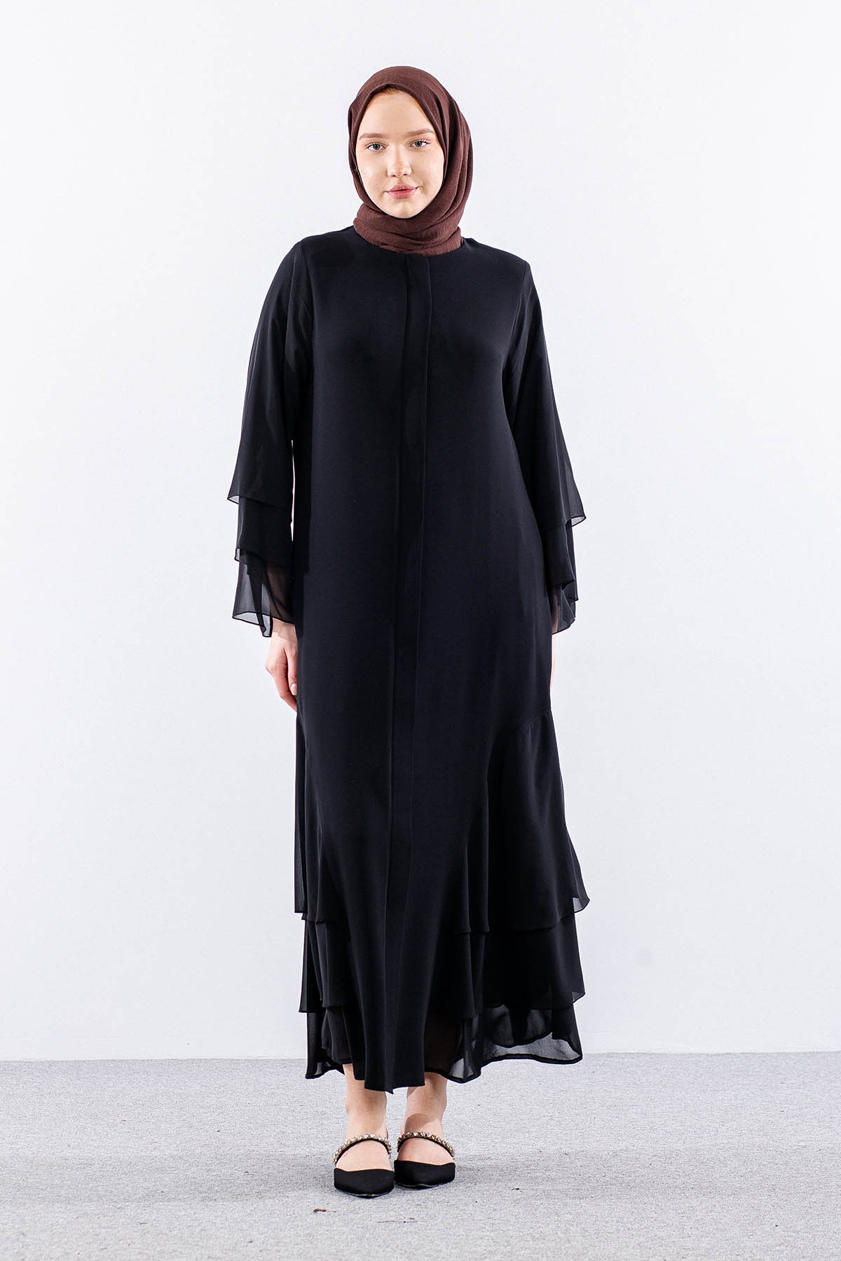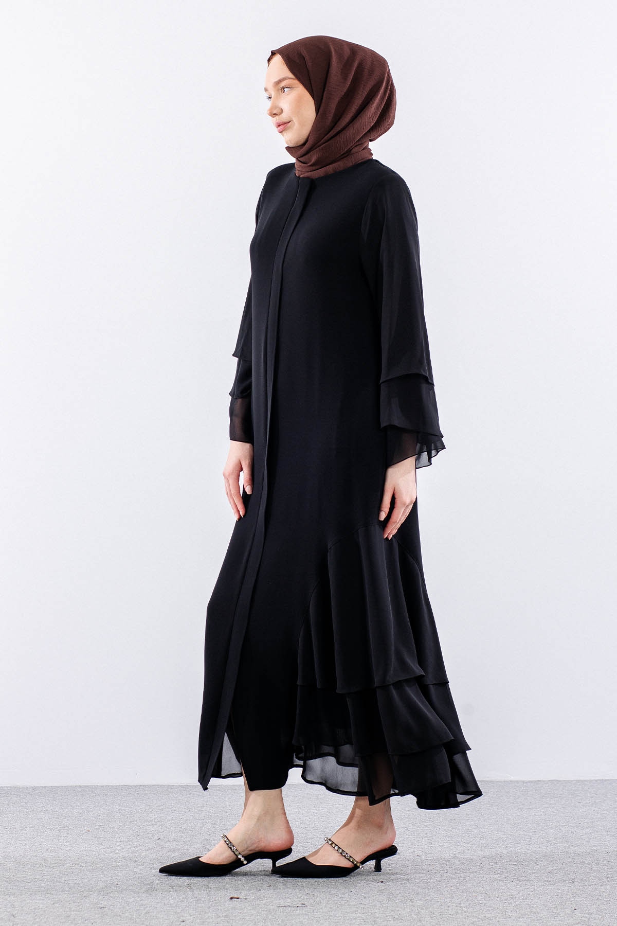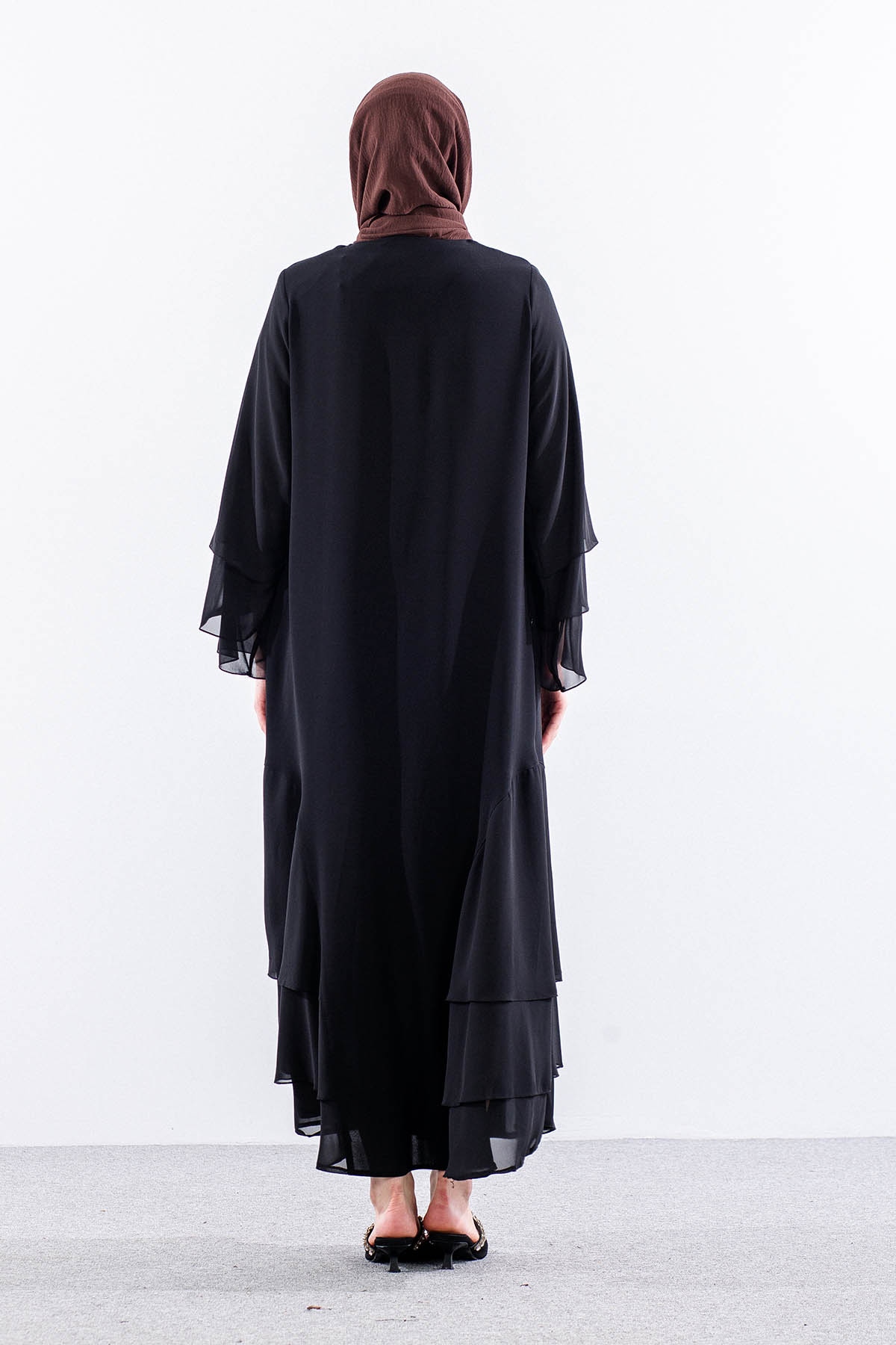 2304 Ferace 42-52 Sıfon Detay Katlı Yaz - Siyah - 1