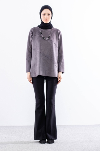2470 Süet Bluz 44-50 - Kahve