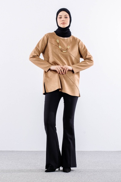 2470 Süet Bluz 44-50 - Kahve - 3