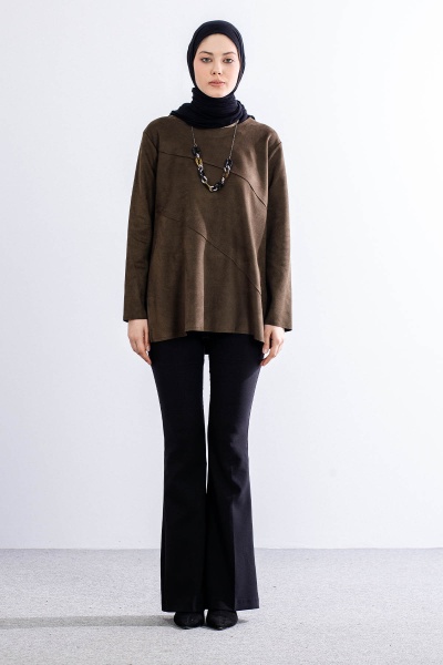 2470 Süet Bluz 44-50 - Kahve - 1