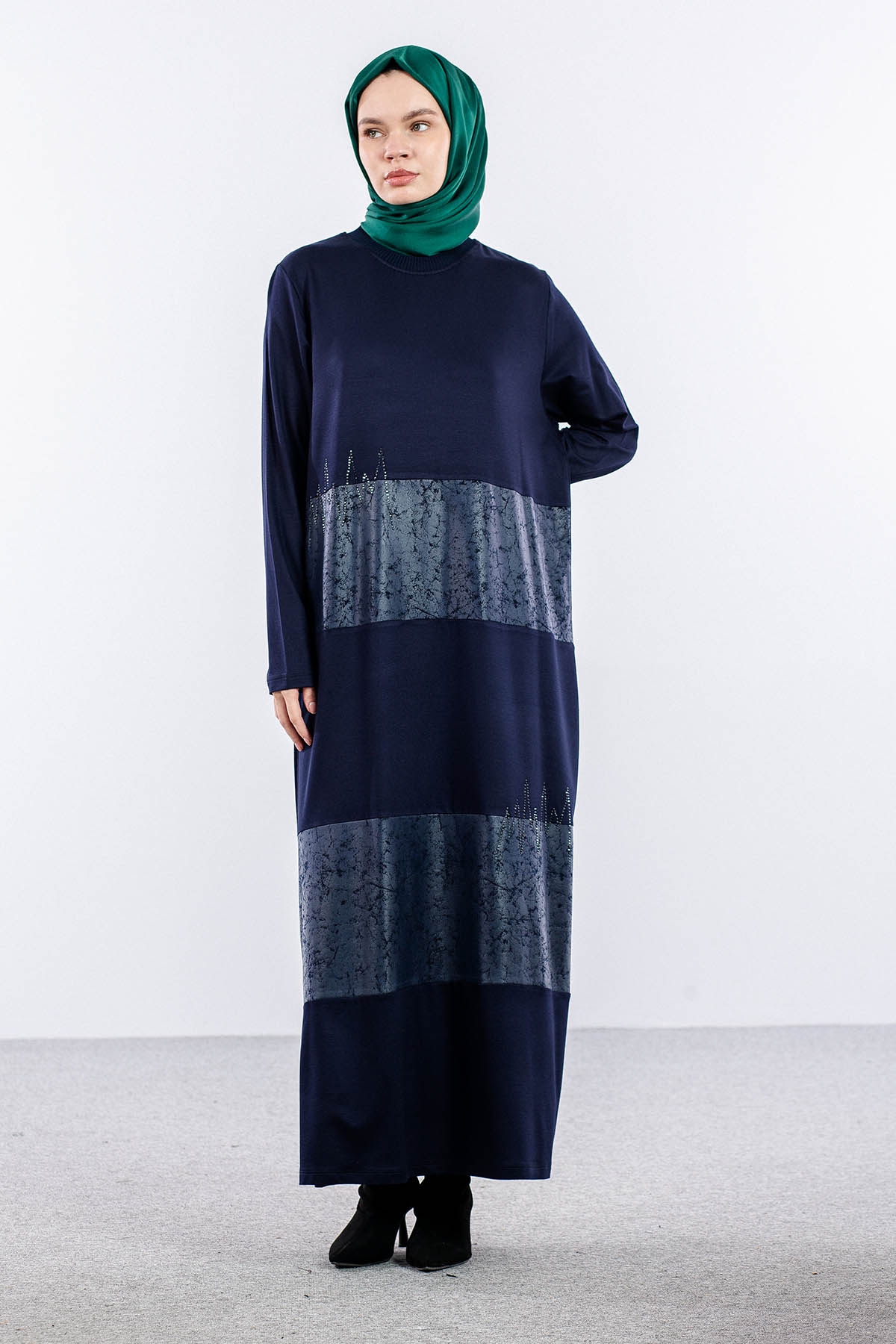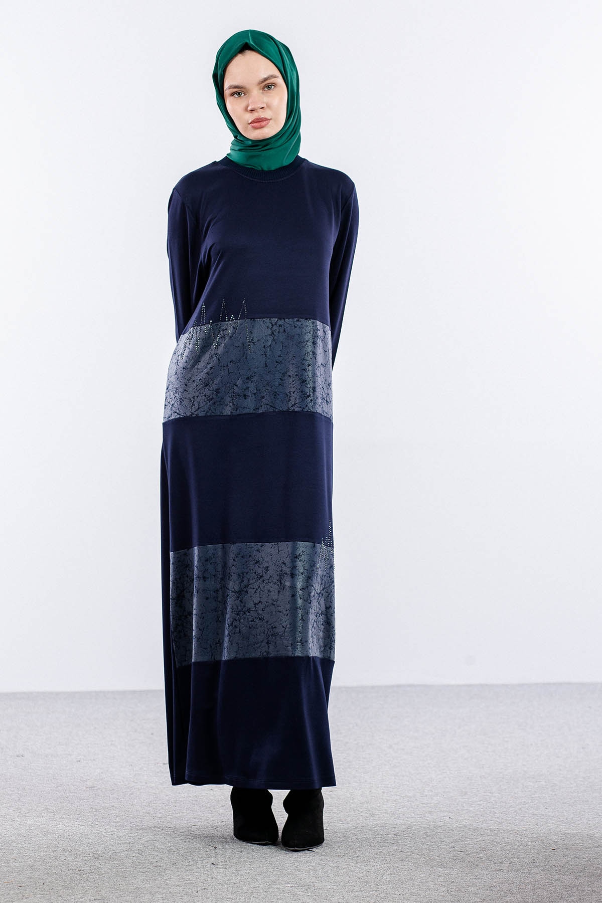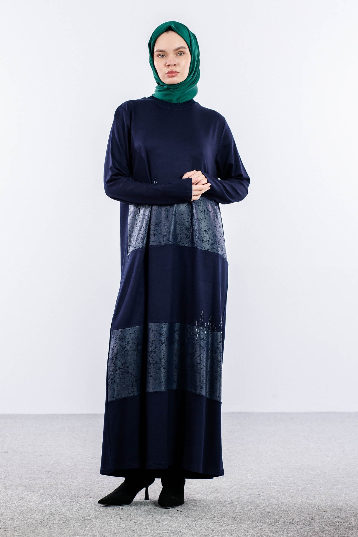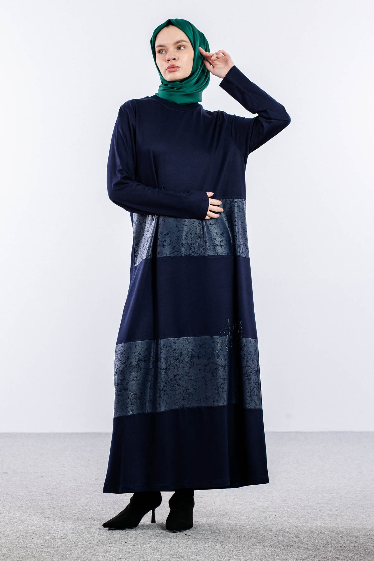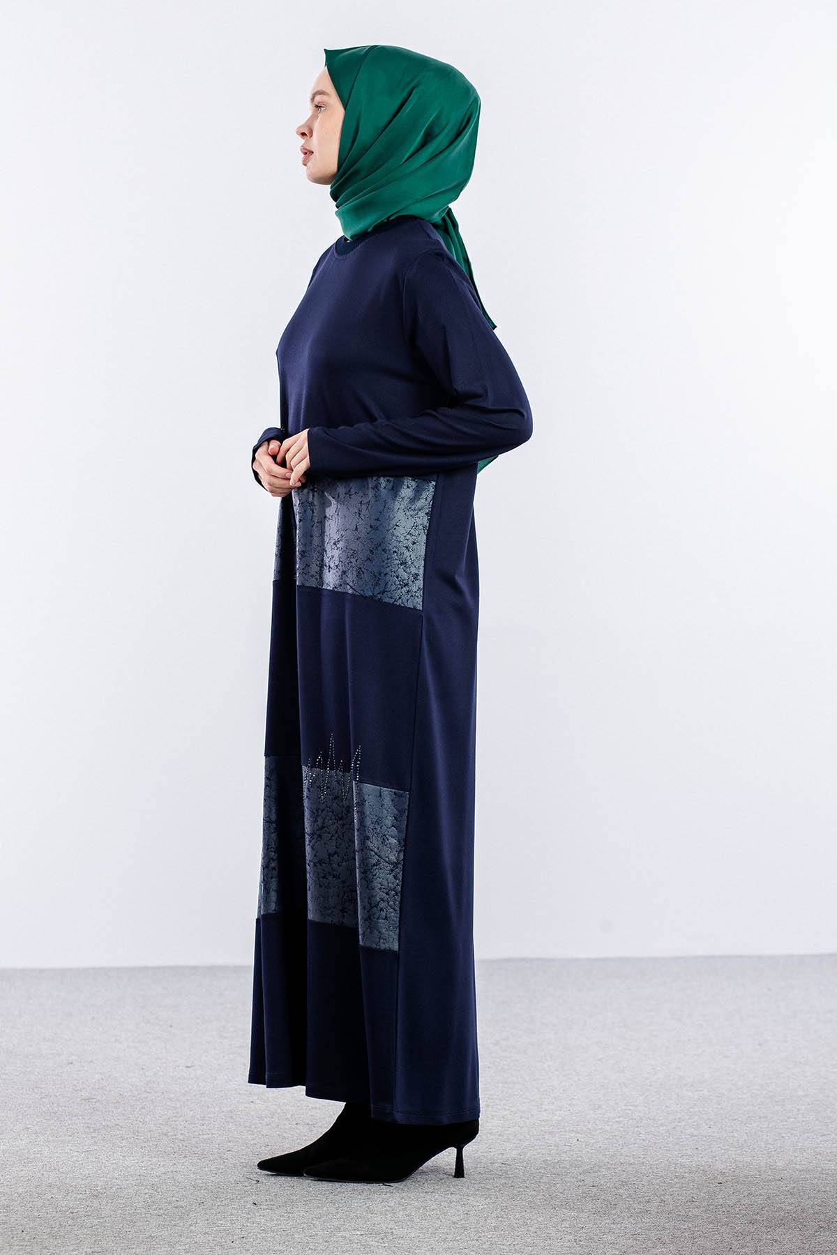 25113 Elbi̇se 44-46-48 Deri Garni - Lacivert - 1