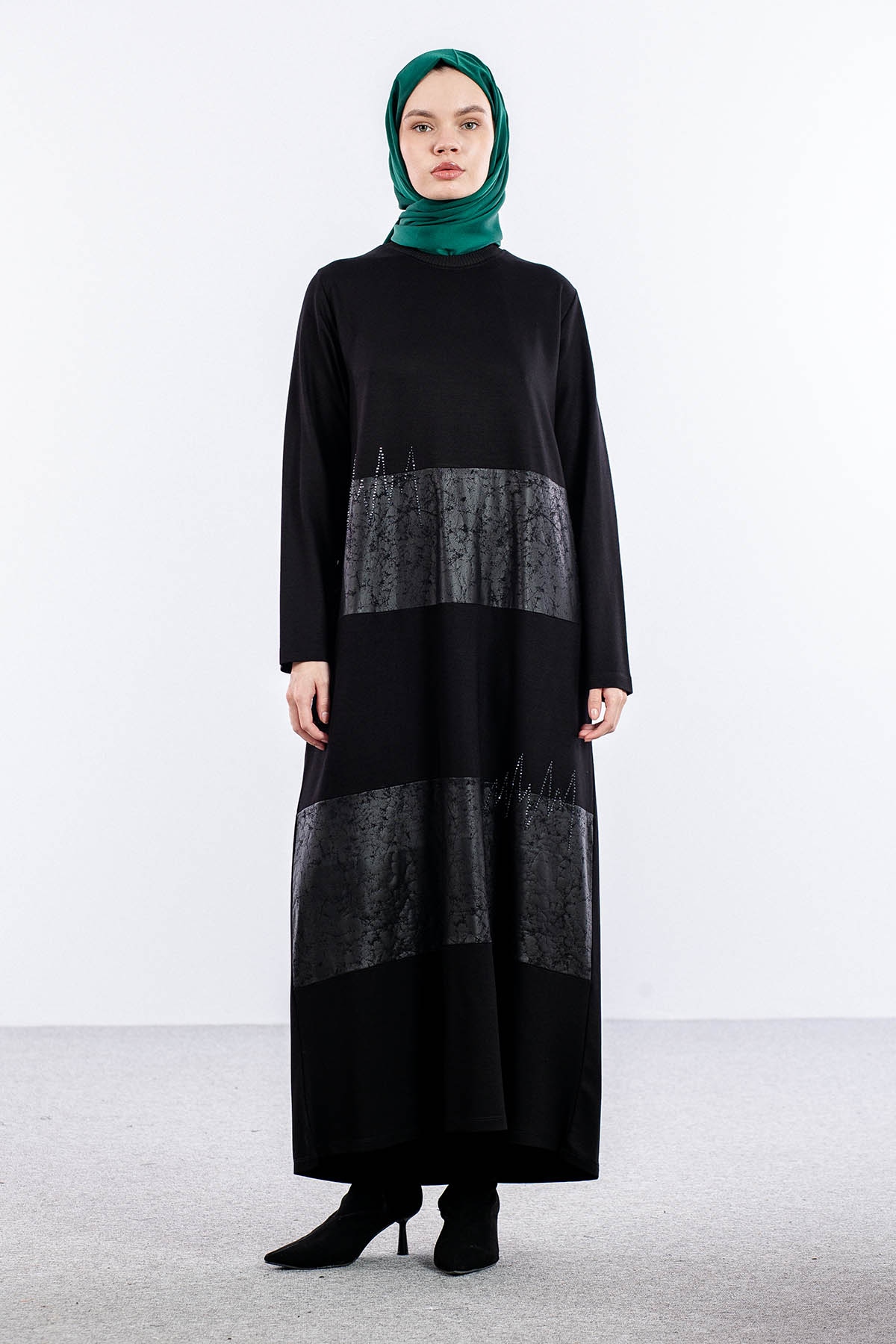 25113 Elbi̇se 44-46-48 Deri Garni - Siyah_k.deri - 1