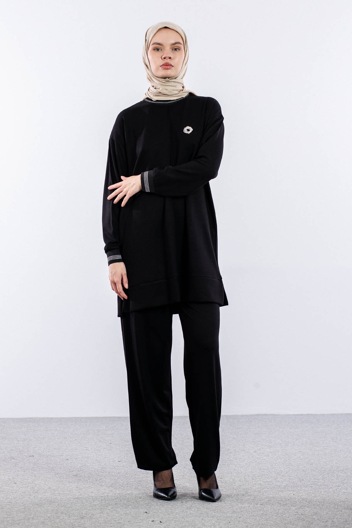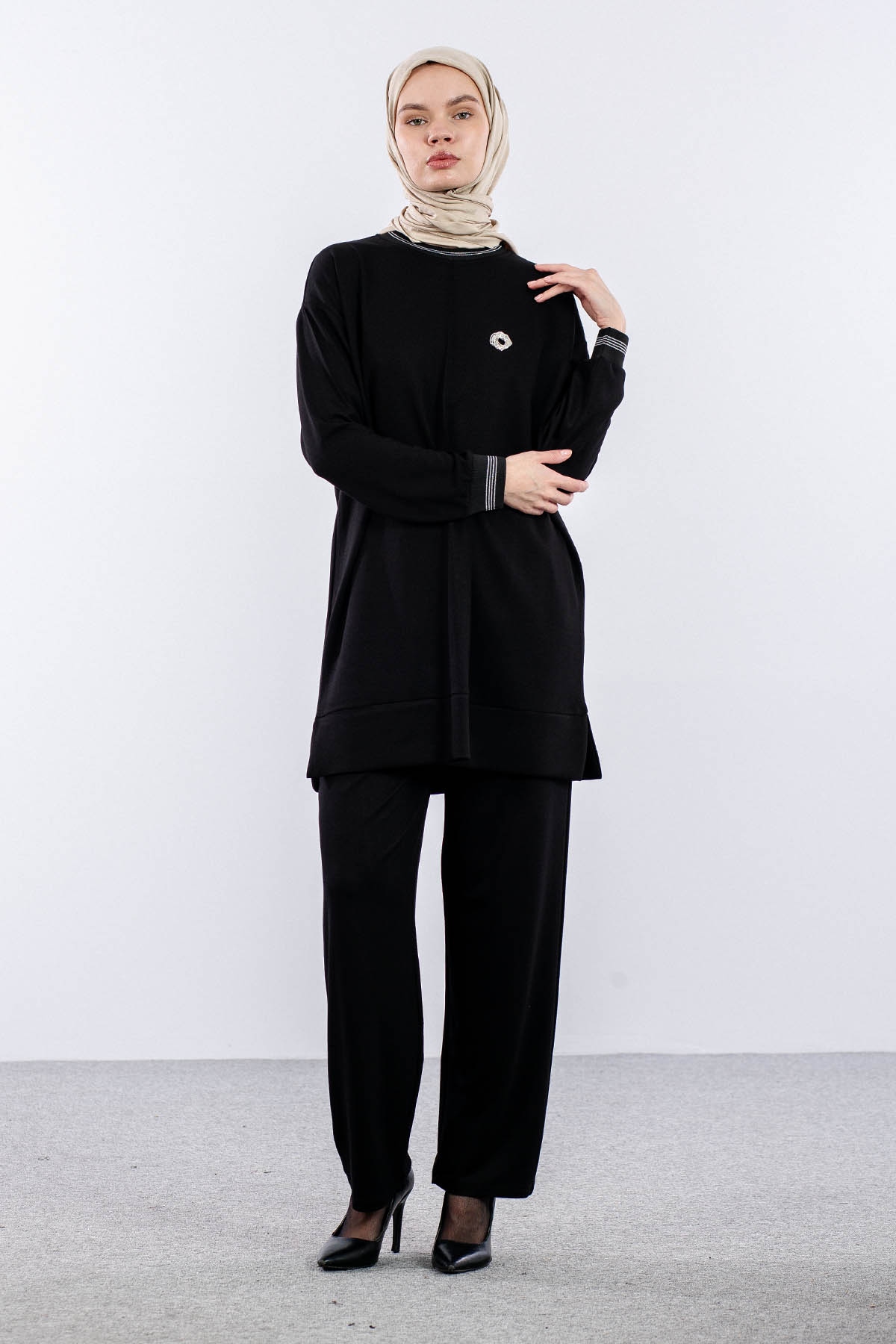 25123 Takim 44-46 Ribana Detay - Siyah - 1