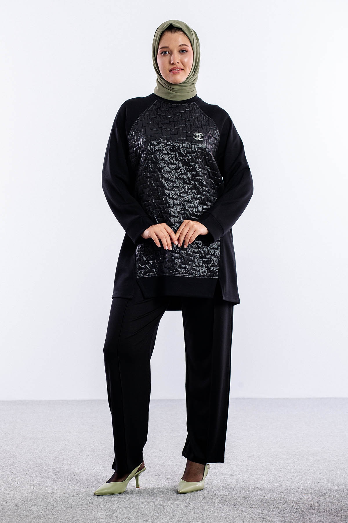 25280 Takim 44-46 Kapitone Garni - Siyah - 1