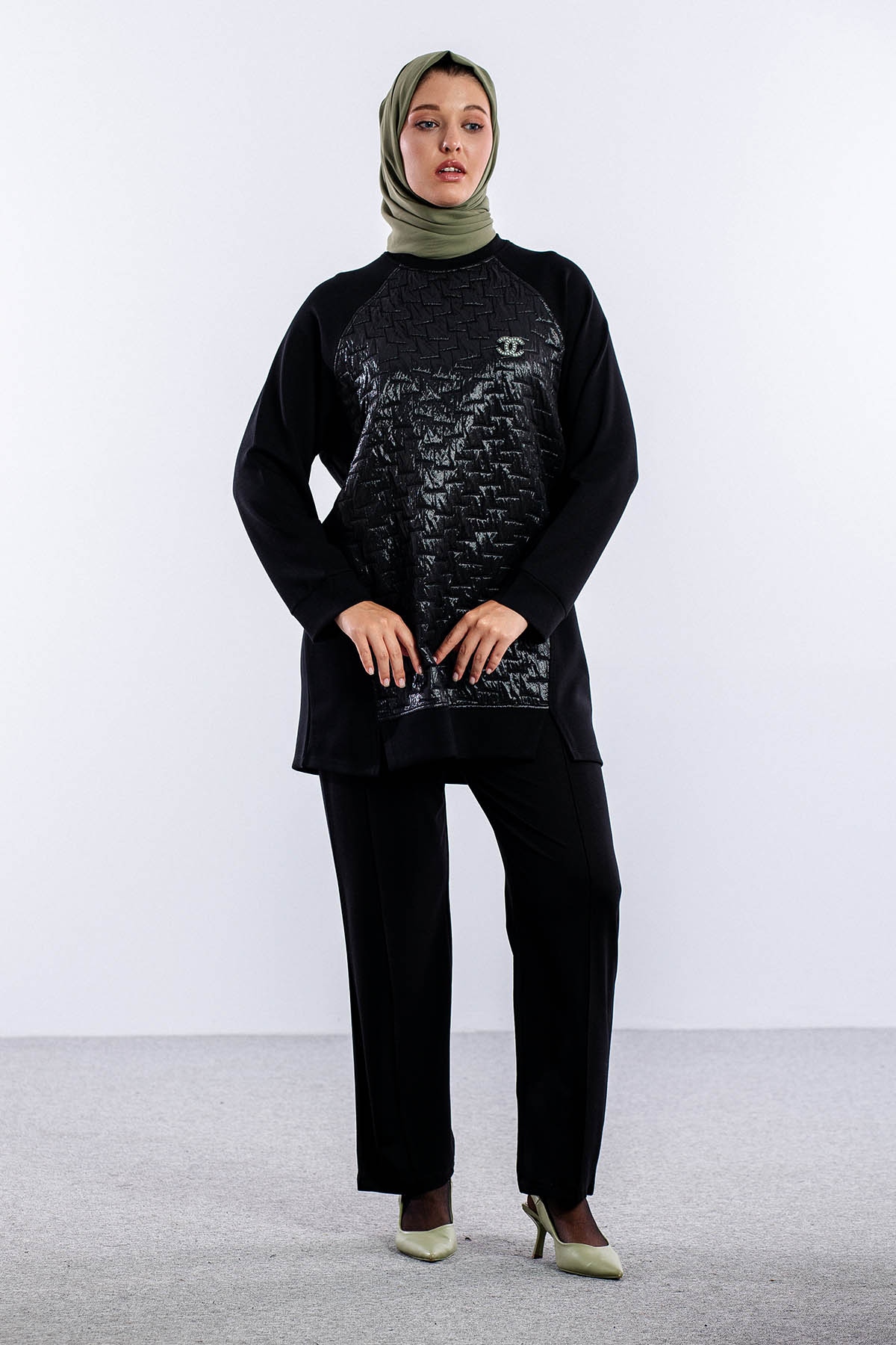 25280 Takim 44-46 Kapitone Garni - Siyah - 3