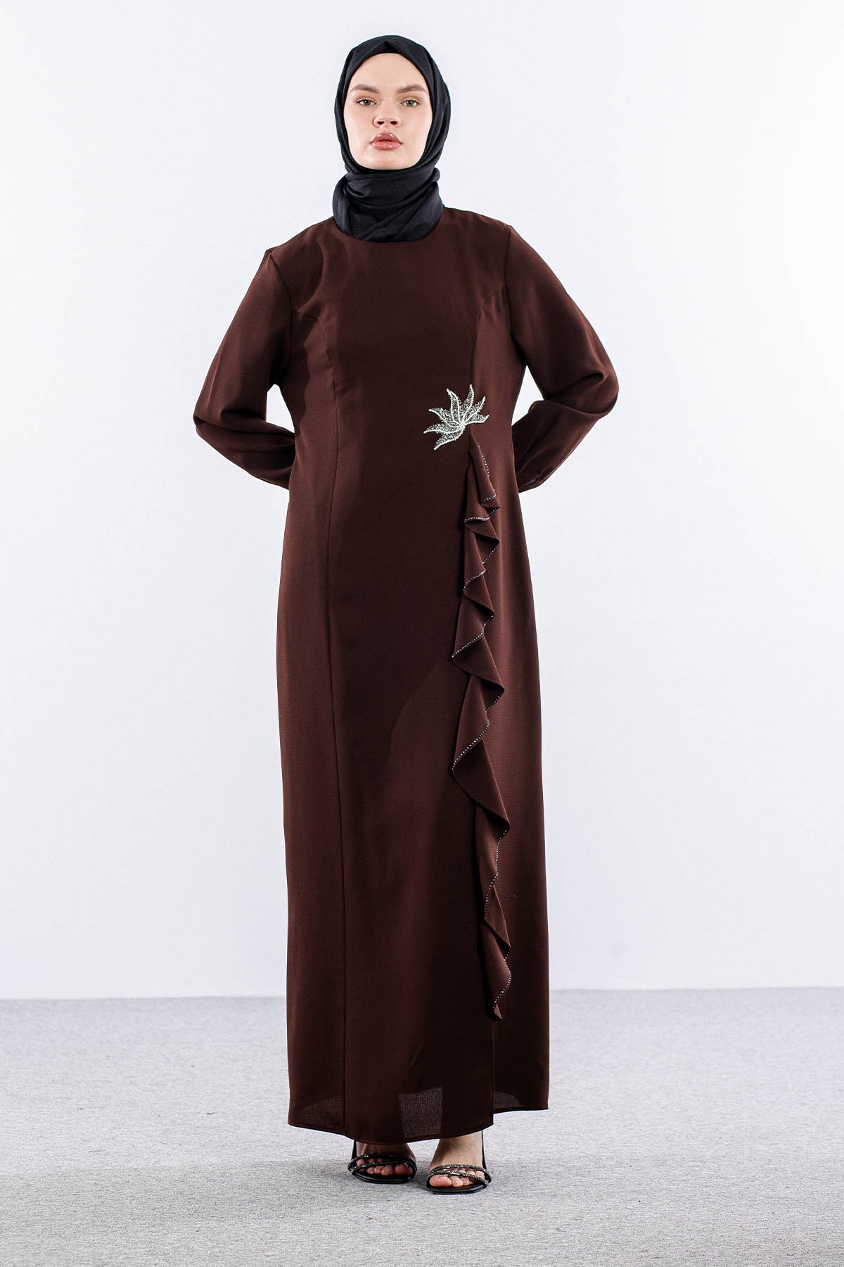 2547 Elbi̇se 44-52 Şık Volan Detay - Kahve - 2