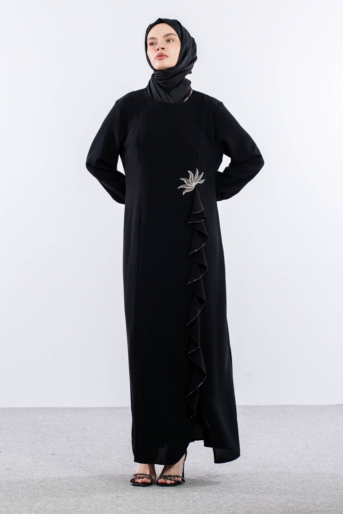 2547 Elbi̇se 44-52 Şık Volan Detay - Siyah - 4
