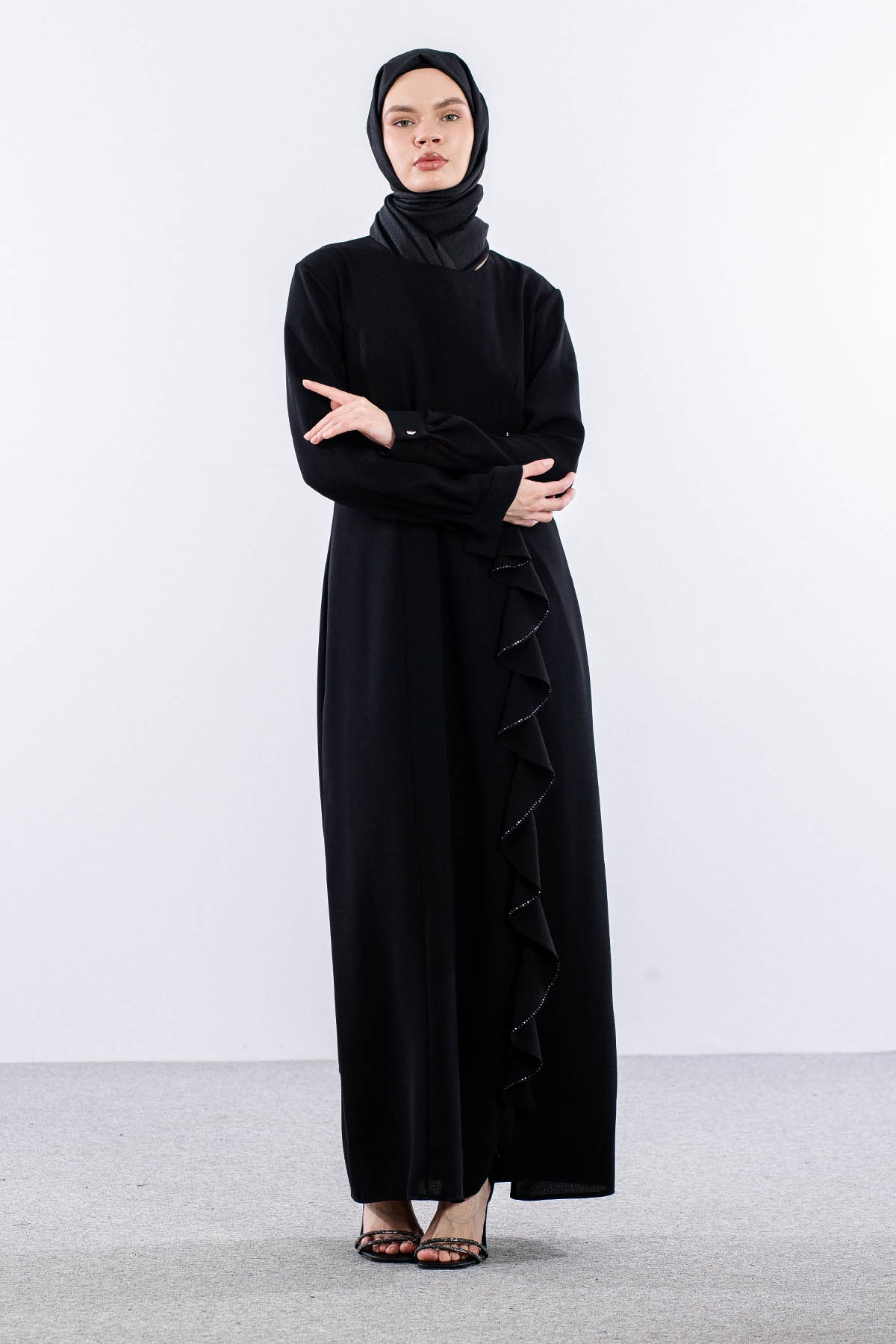 2547 Elbi̇se 44-52 Şık Volan Detay - Siyah - 3