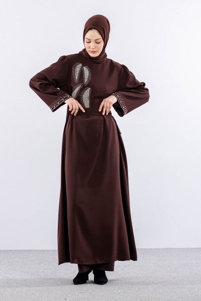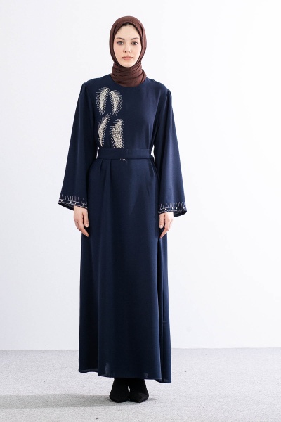 2561 Elbise 44-52 Kol Ve Yan Tas Detay - Siyah - 2