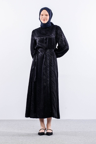 2573 Elbi̇se 36-44 Balon Kol Saten Jakar Detay - Lacivert
