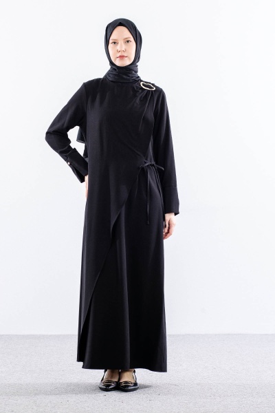 2580 Elbise 38-46 Omuz Toka Detay - Kahve - 1