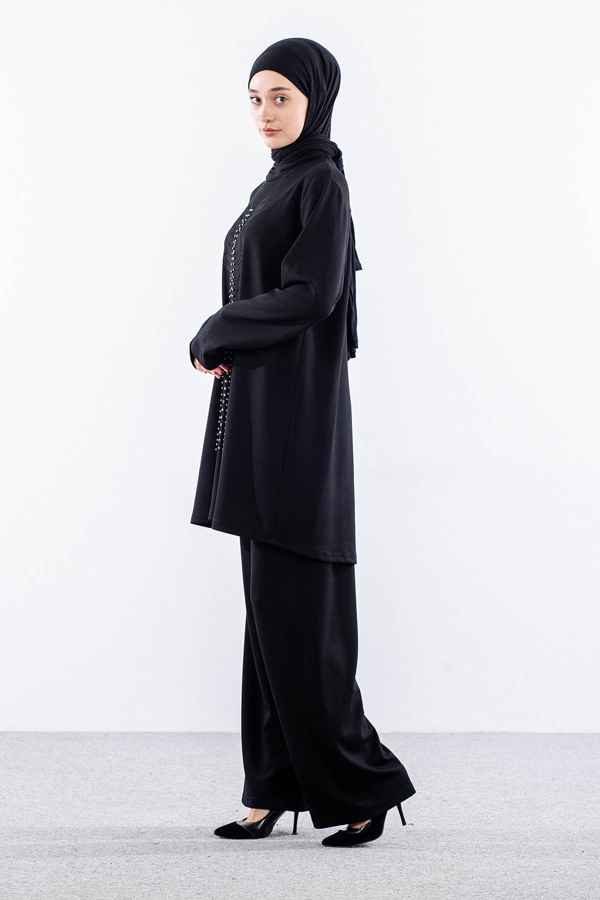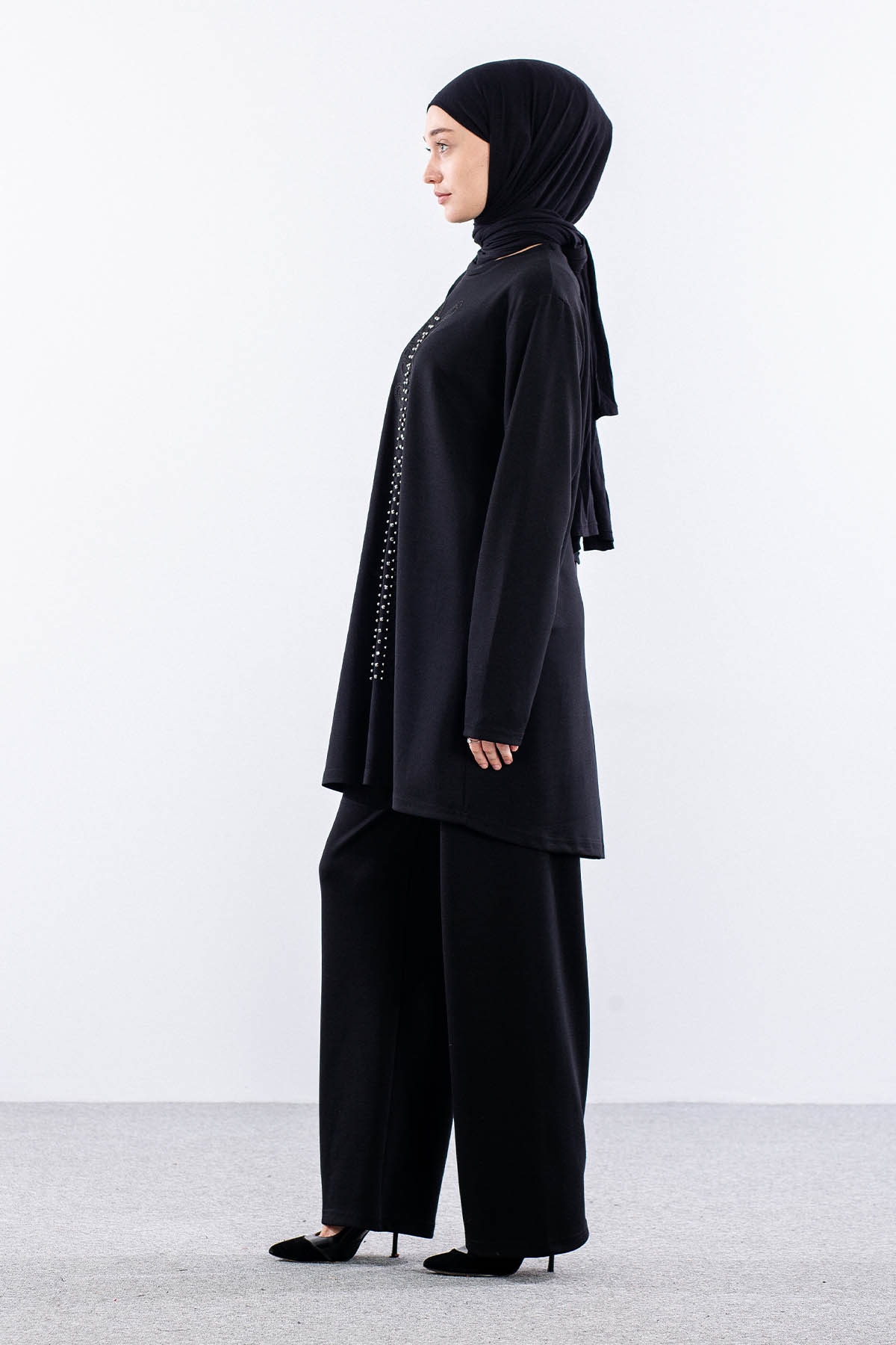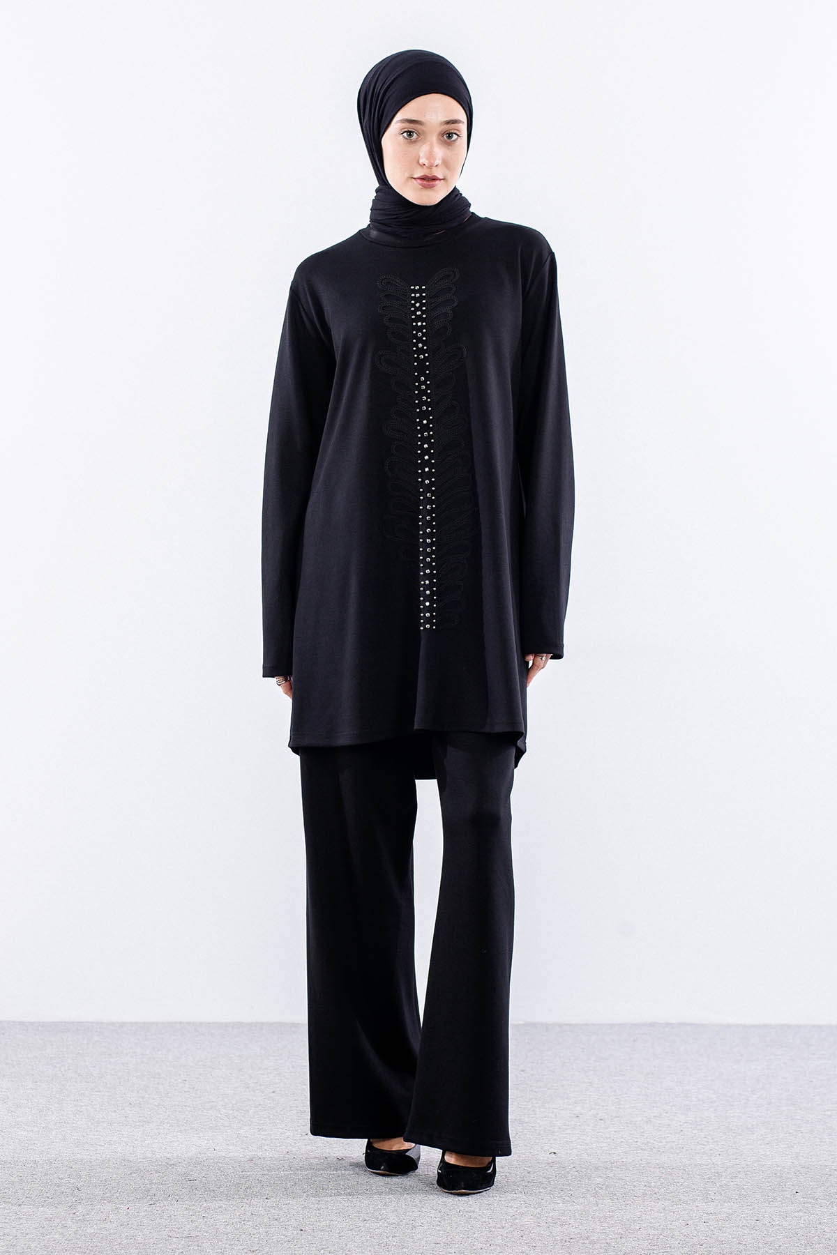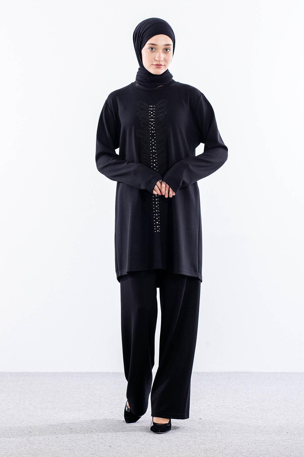 312 Takim 40-46 Boncuk Nakis Detayli - Siyah - 2