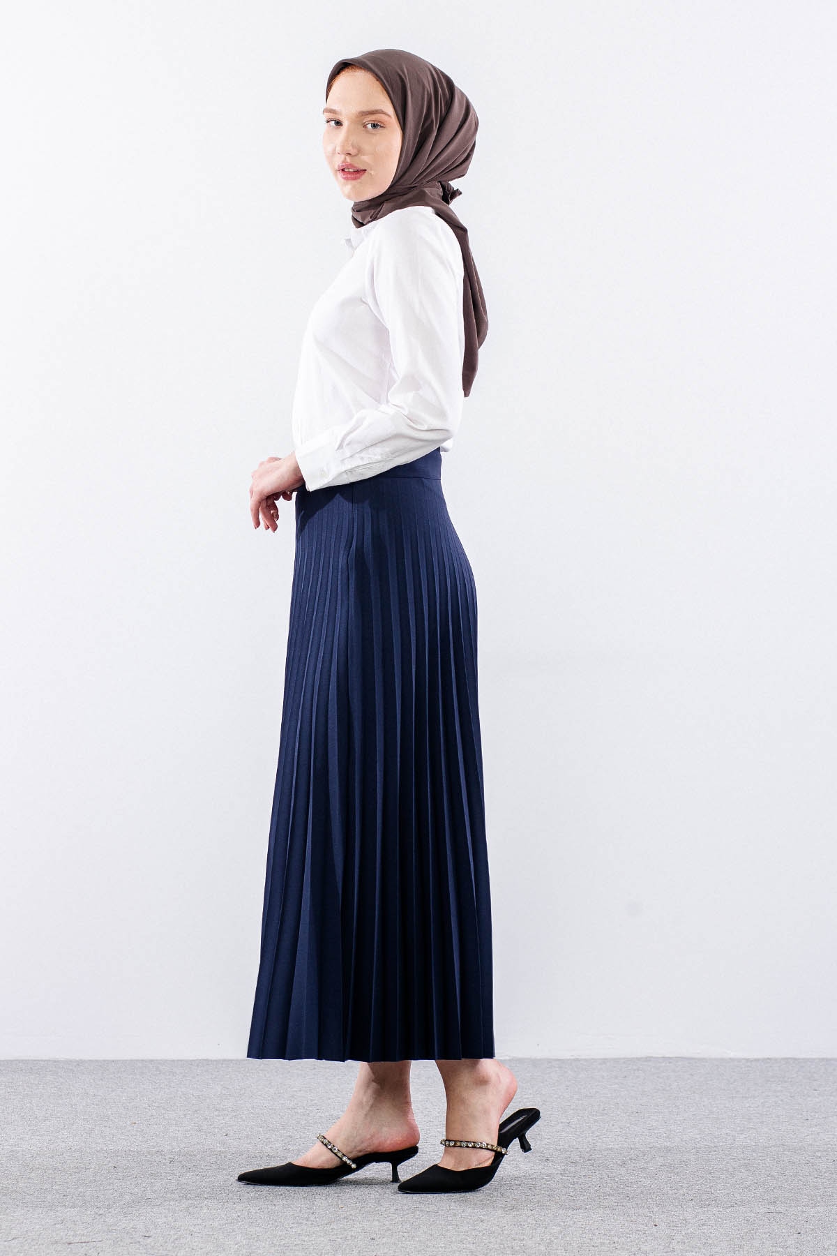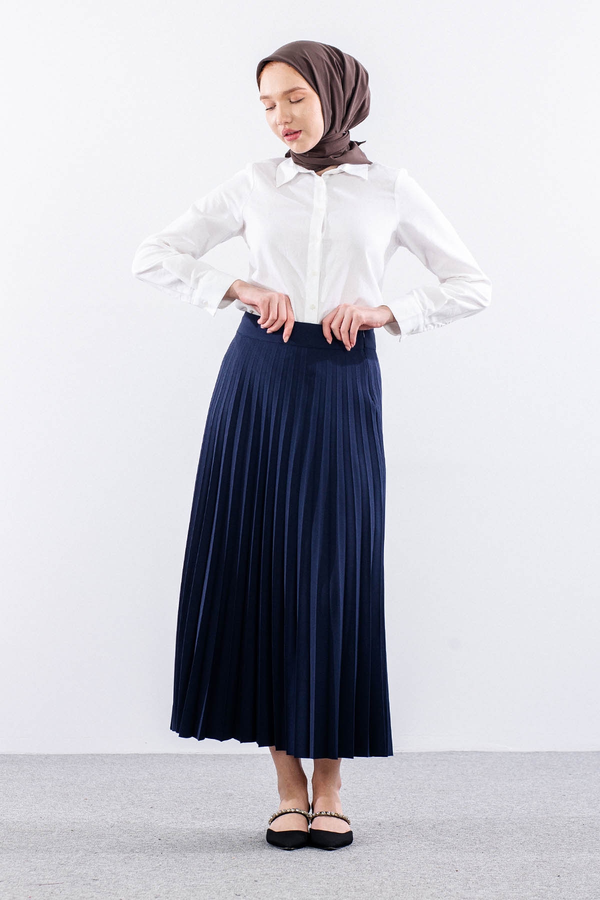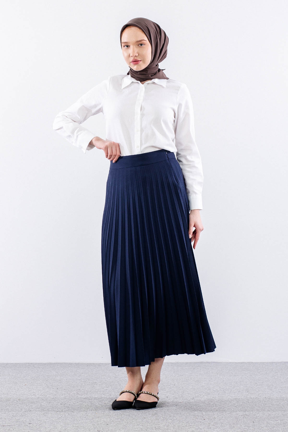 3322 Etek 38-48 Plise Detay - Lacivert - 1