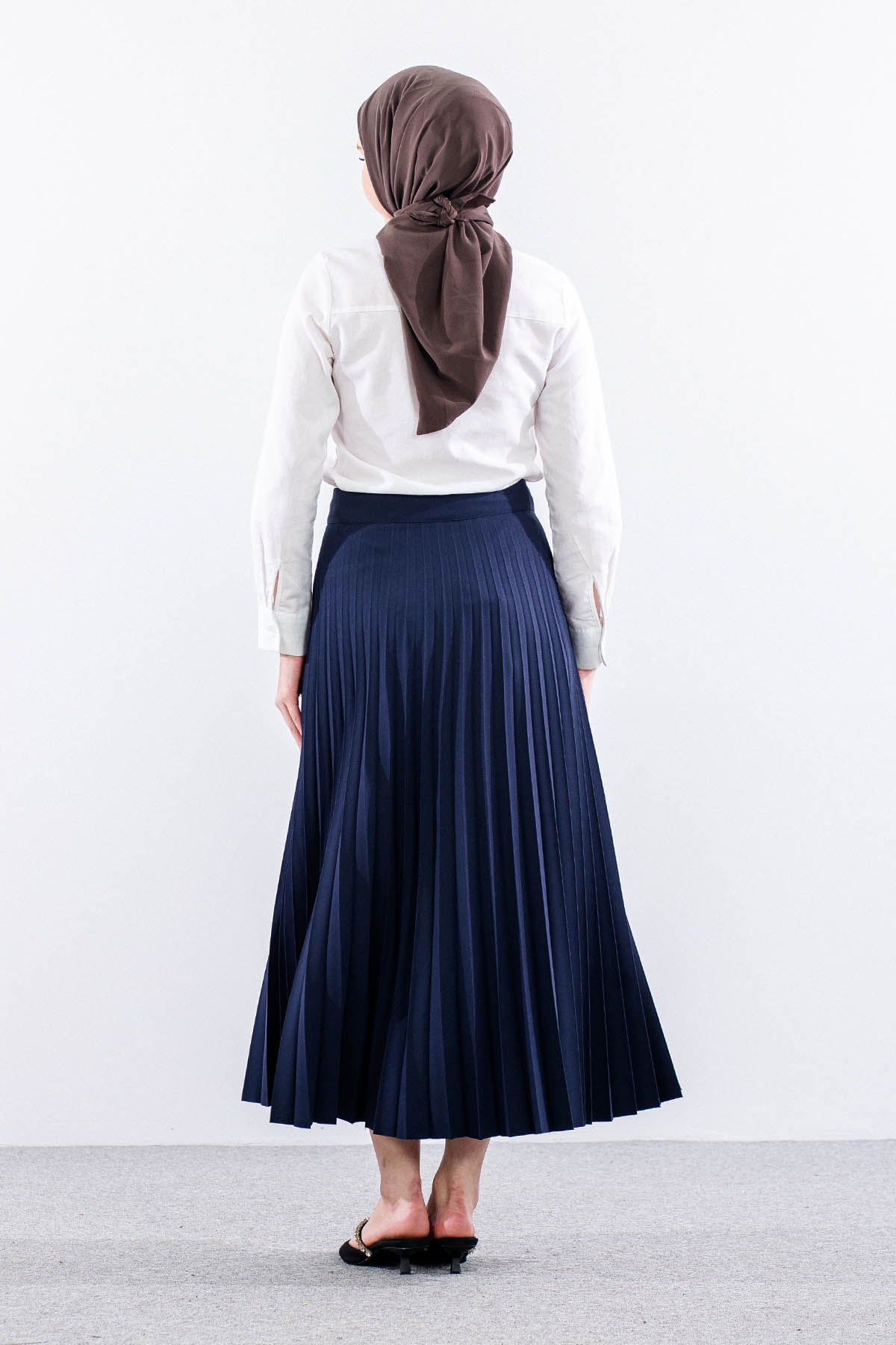 3322 Etek 38-48 Plise Detay - Lacivert - 4