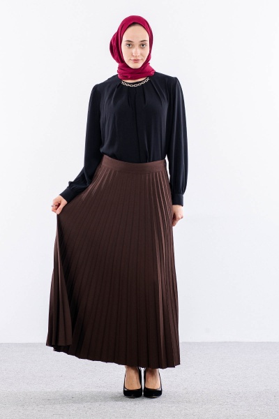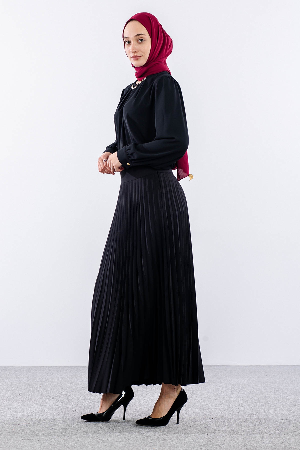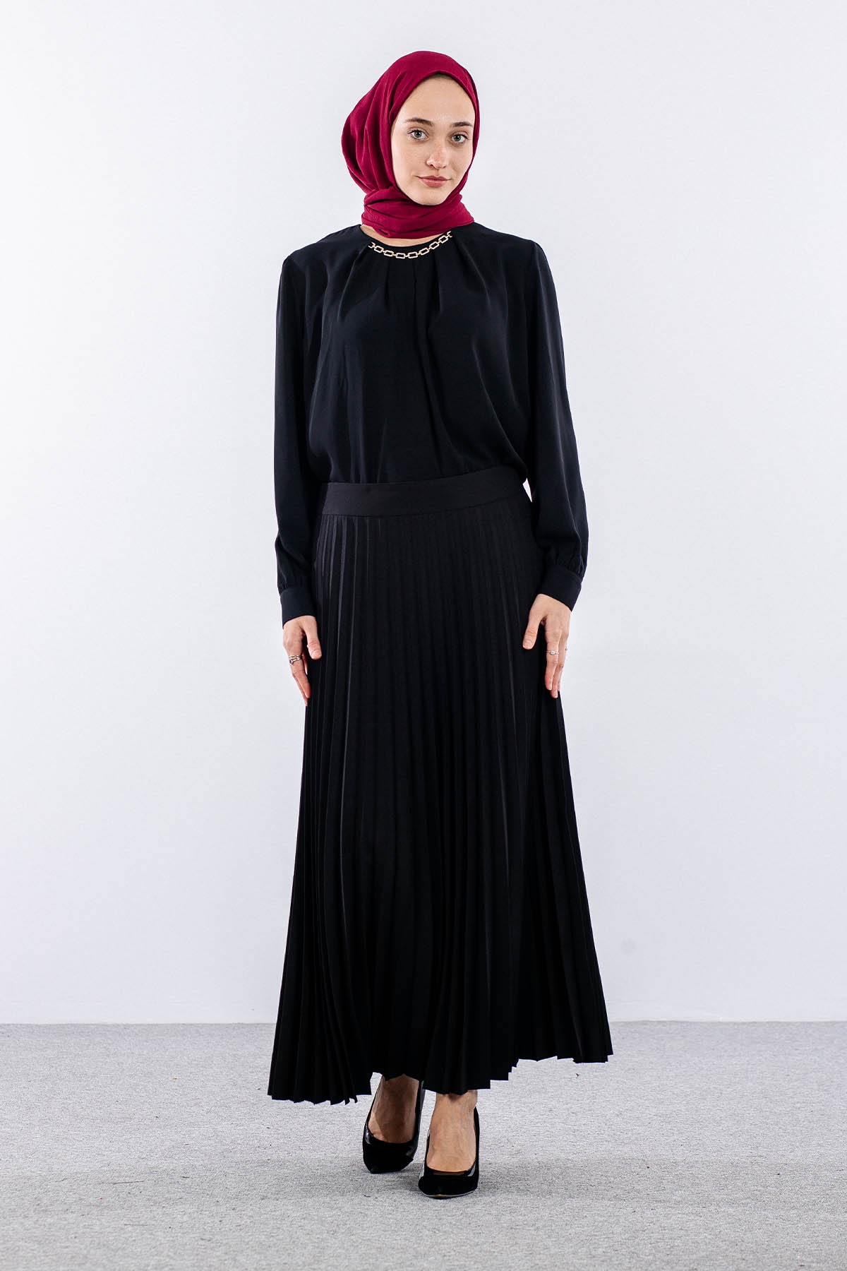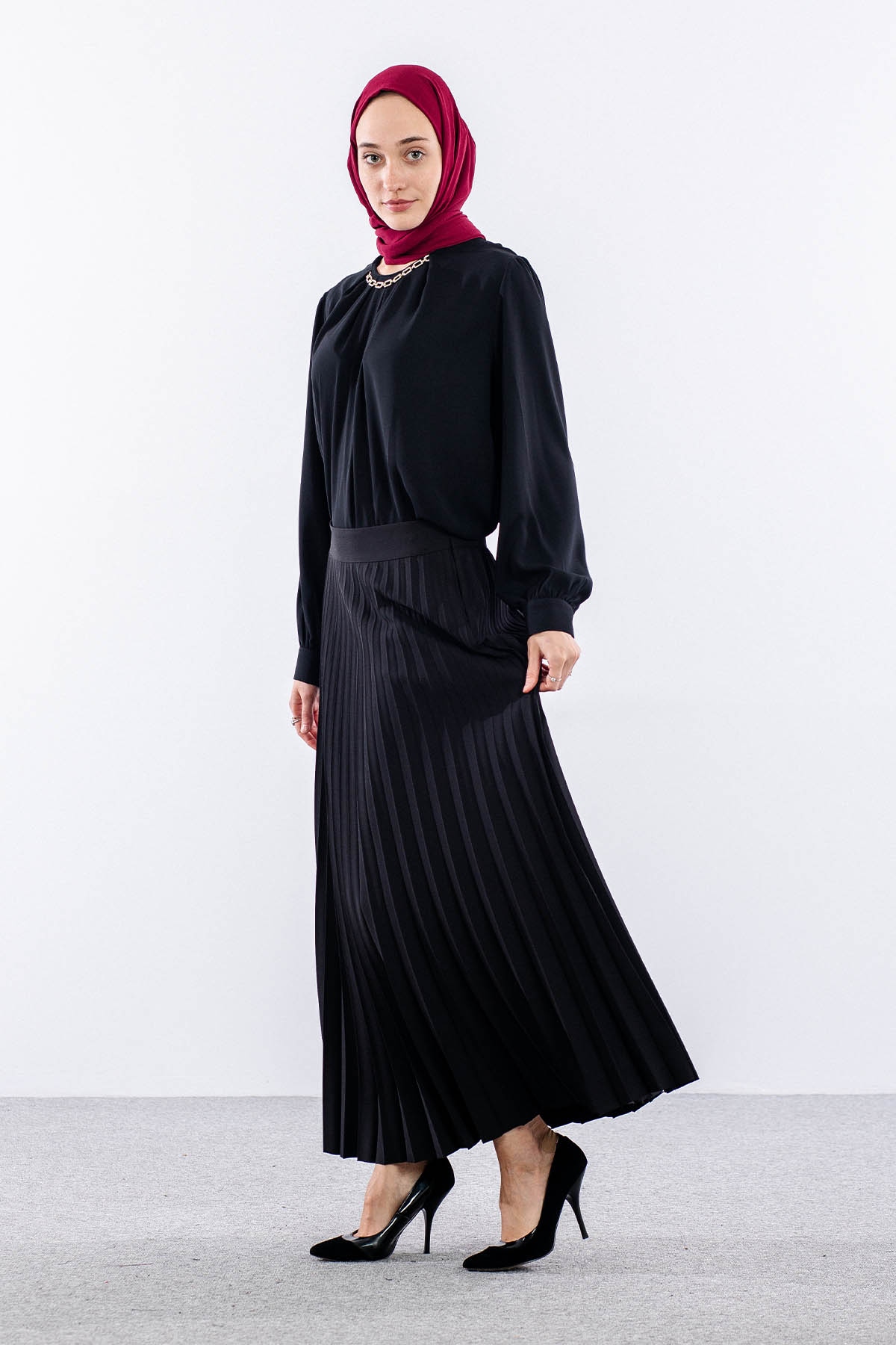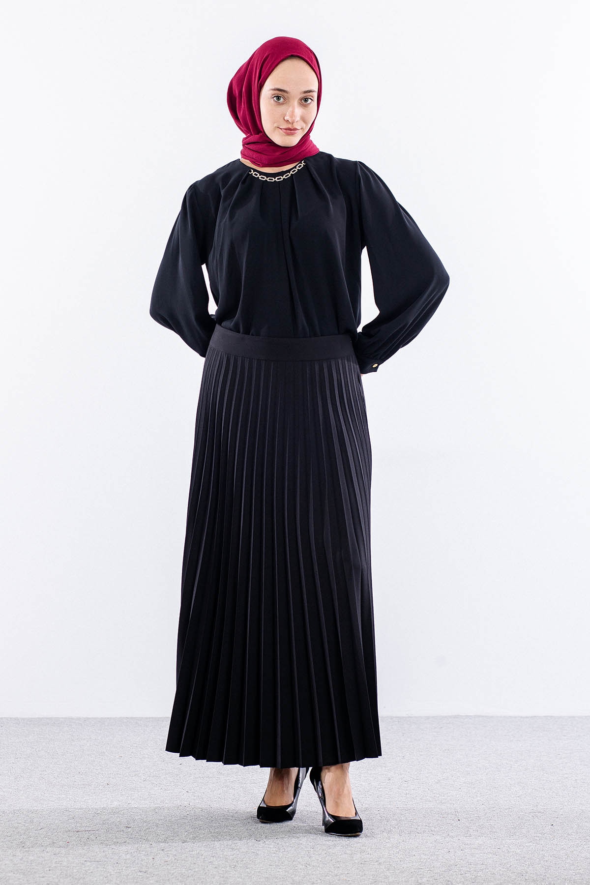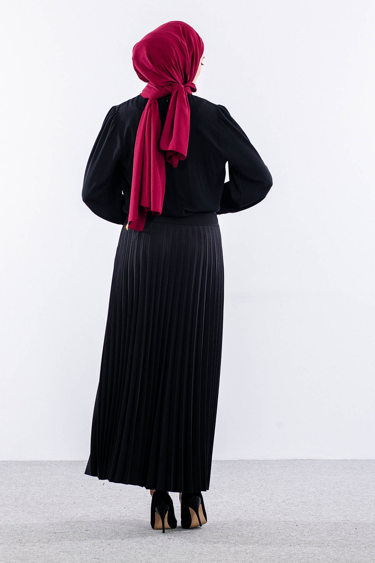 3322 Etek 38-48 Plise Detay - Siyah - 1