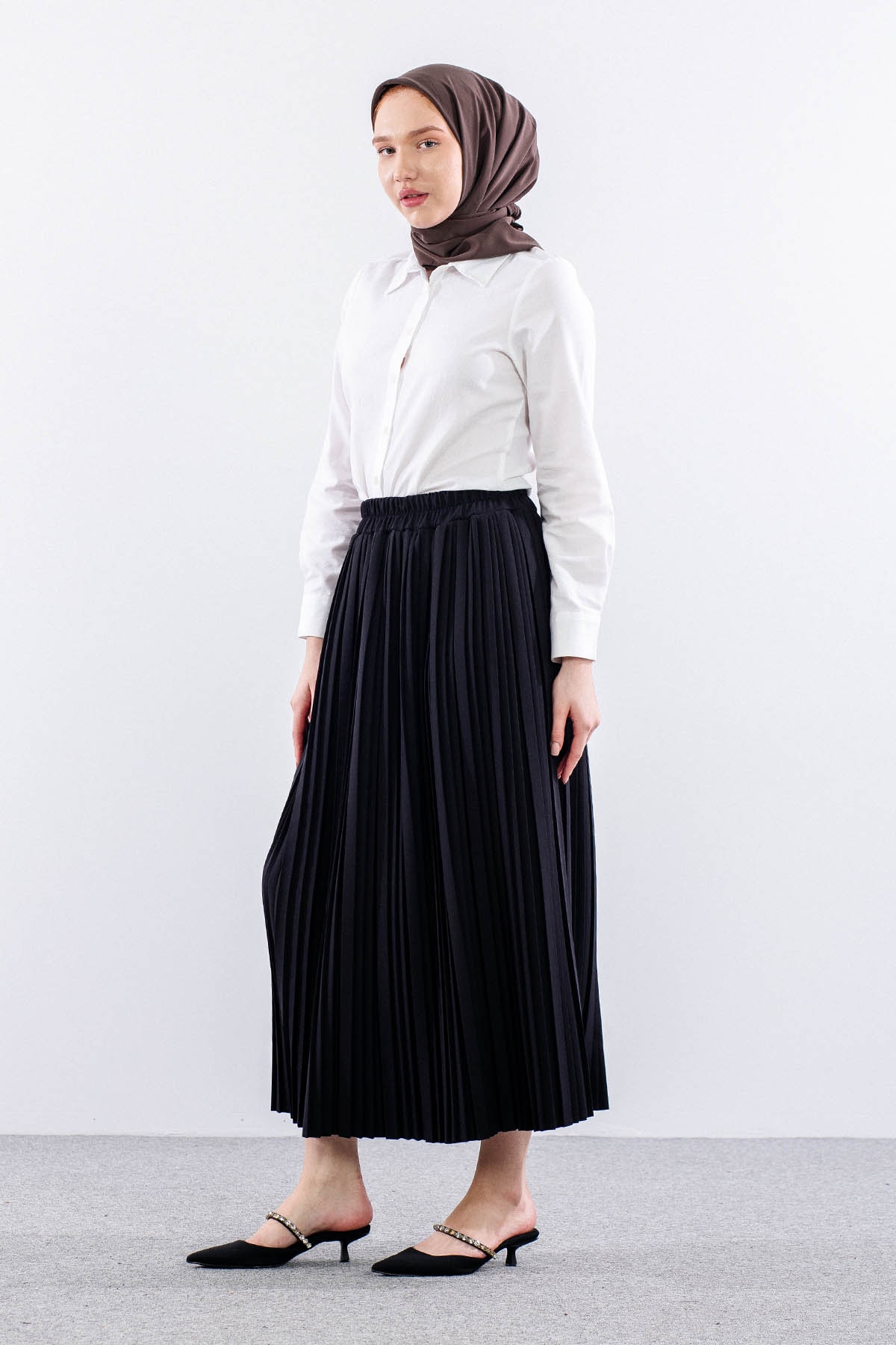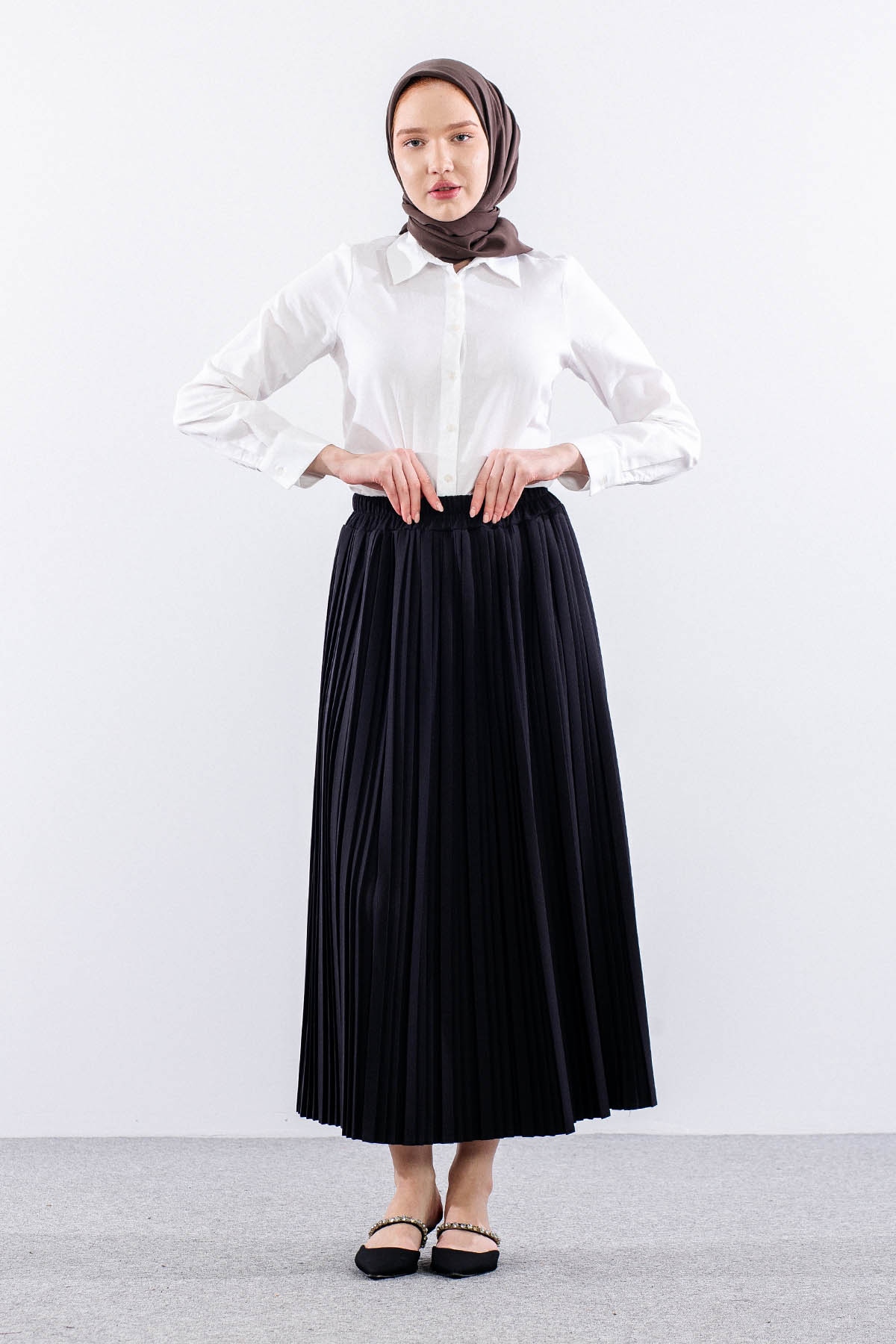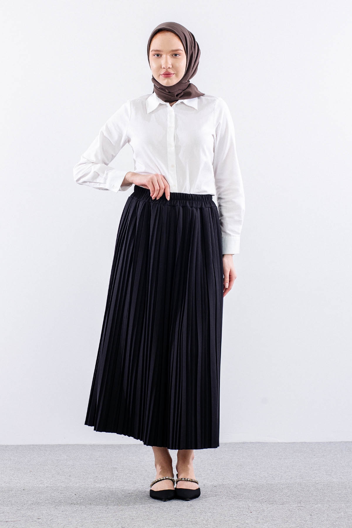 3347 Etek 1-2-3 Plise Detay - Siyah - 3