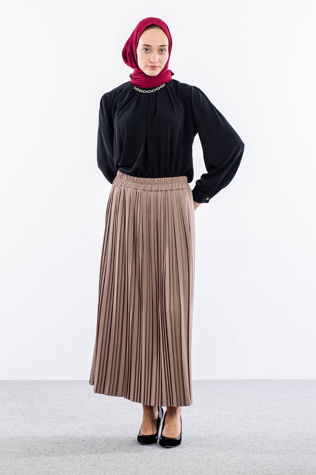 3347 Etek 1-2-3 Plise Detay - Vizon - 2
