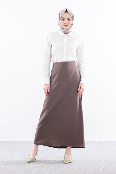 3349 Etek 42-52 Dugme Detay Kalem - Kahve - 3