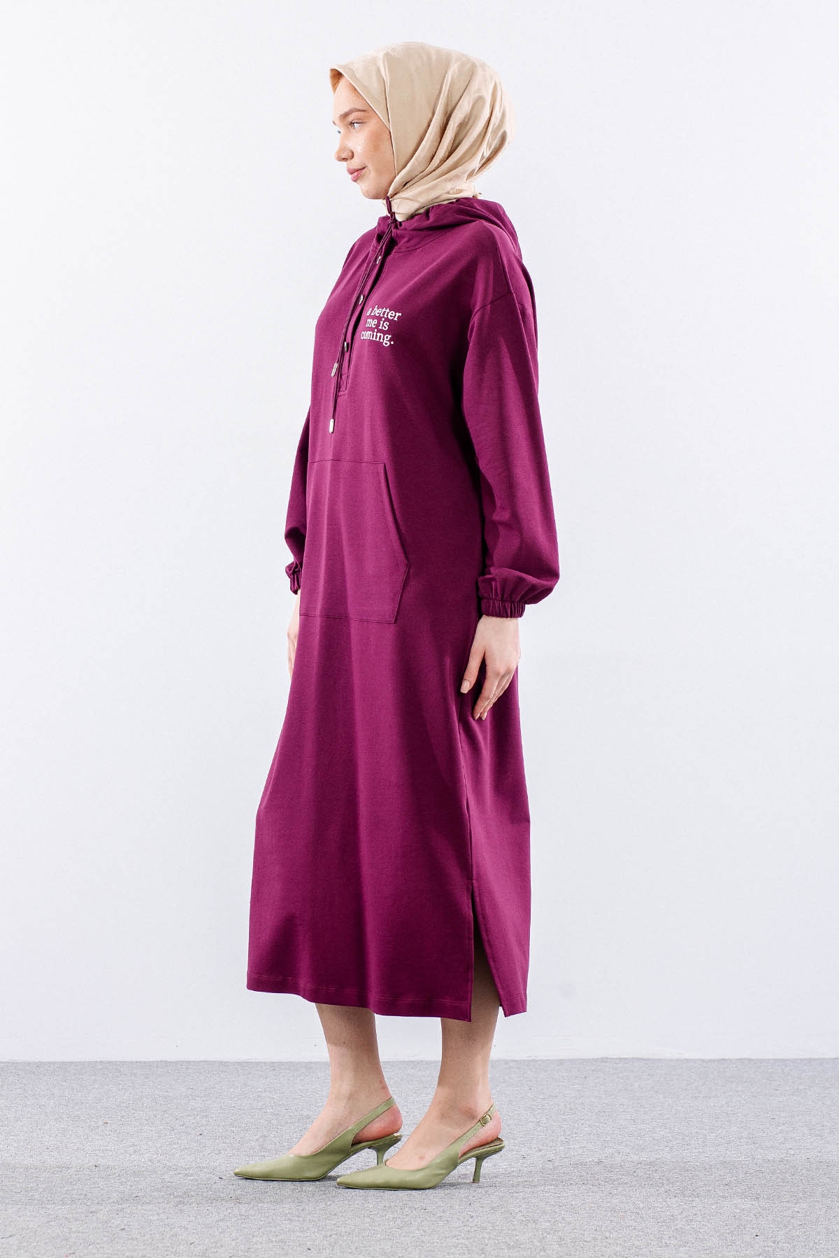 33744 Elbise Tek Kapson Detay - Bordo - 3