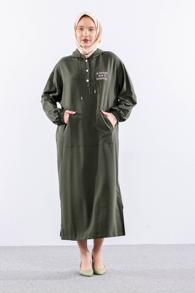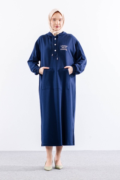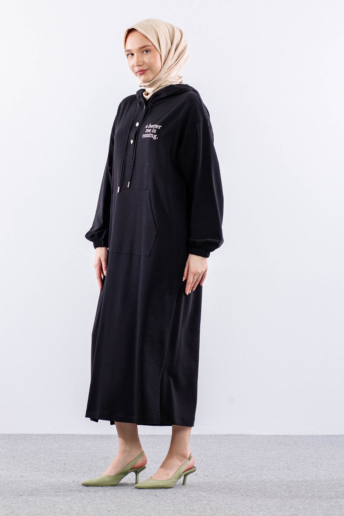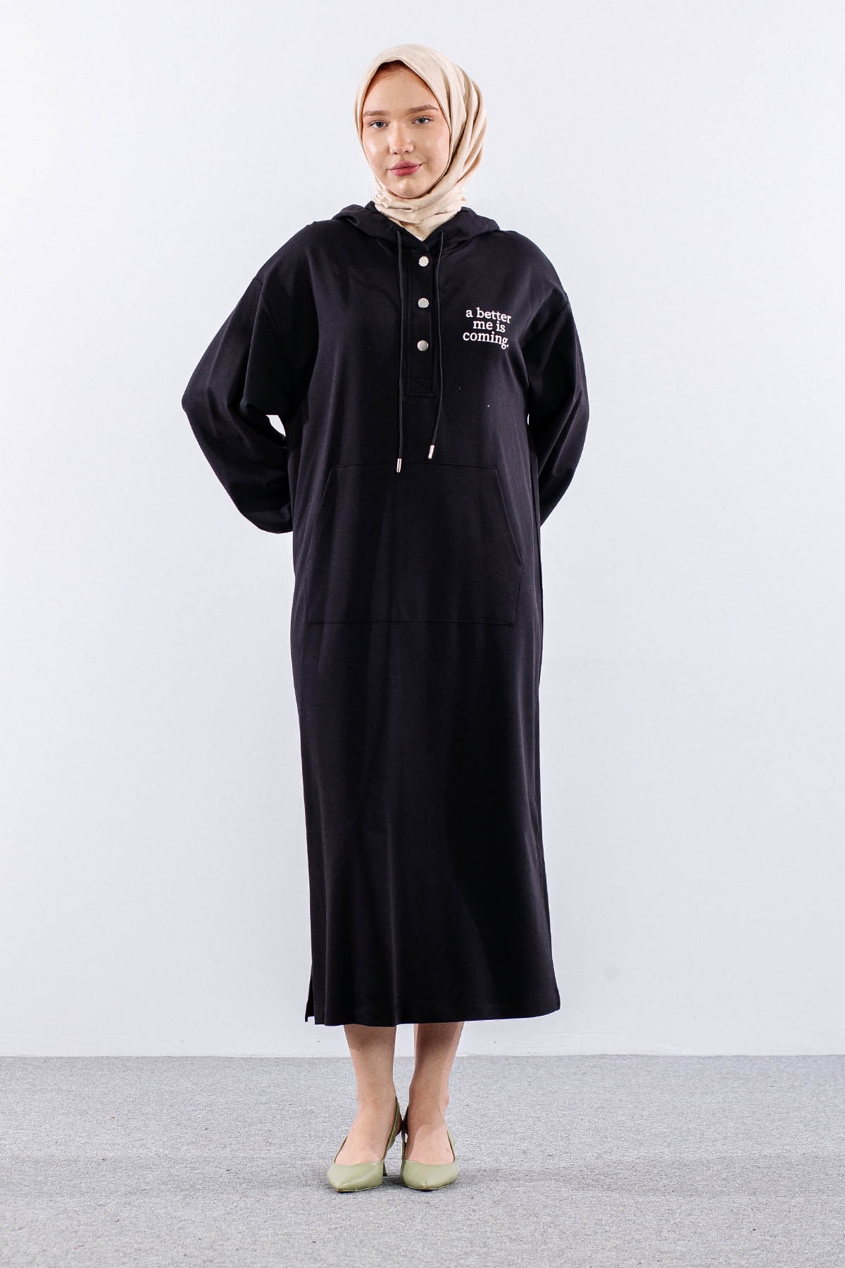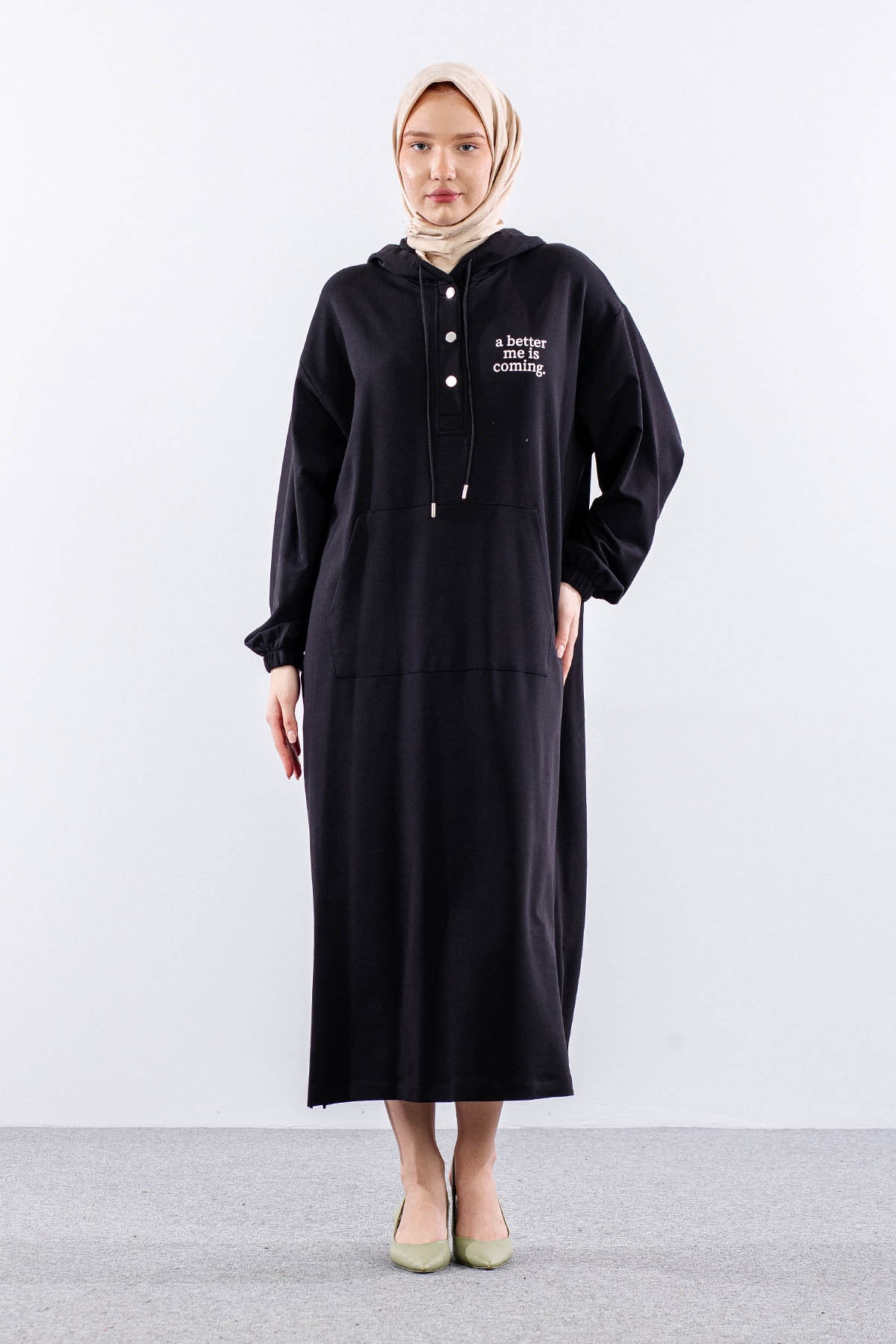 33744 Elbise Tek Kapson Detay - Siyah - 1