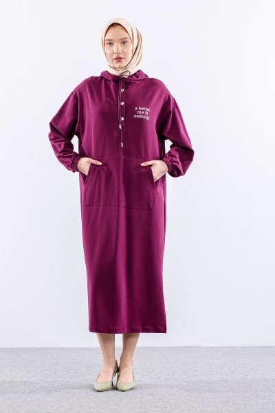33744 Elbise Tek Kapson Detay - Siyah - 5