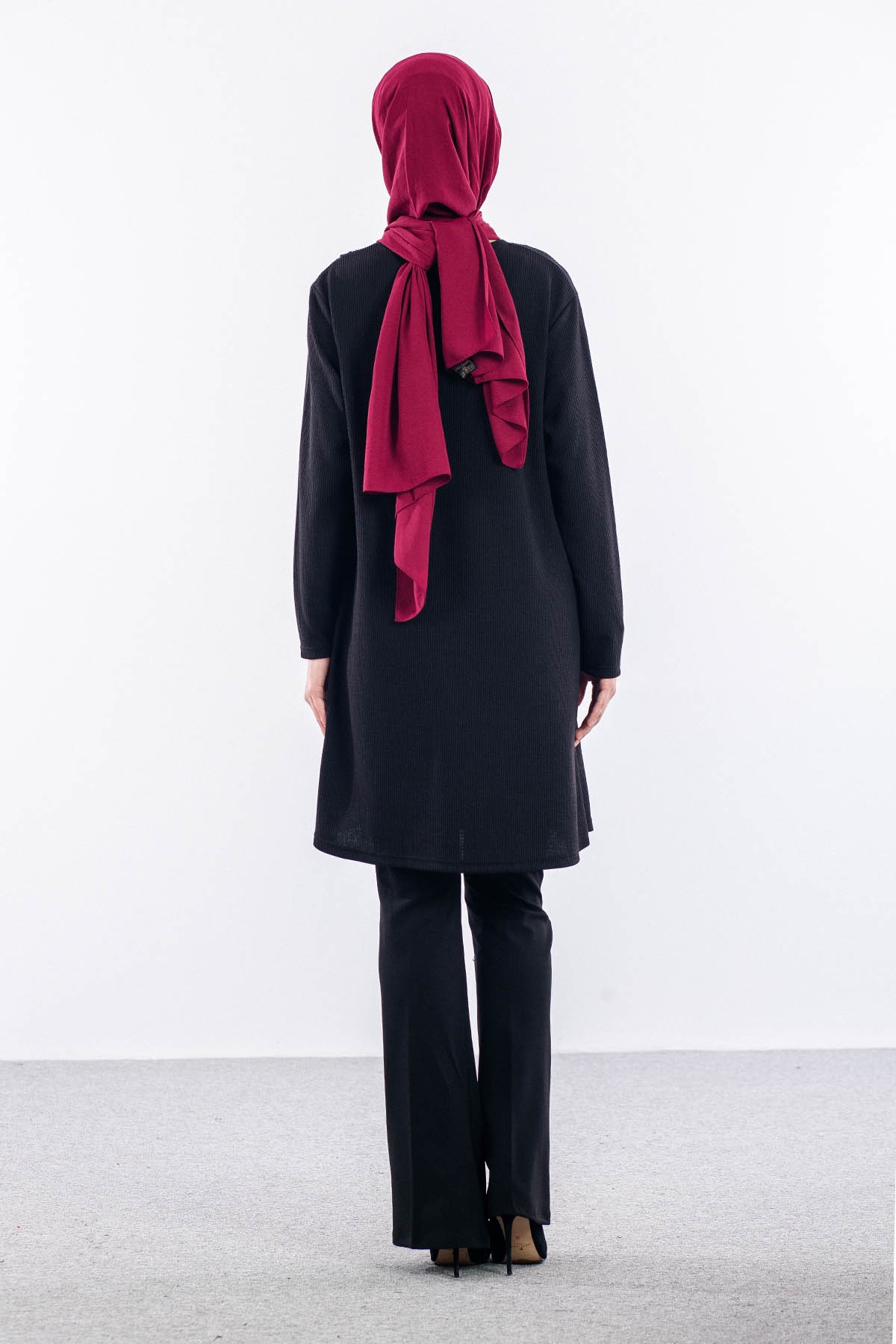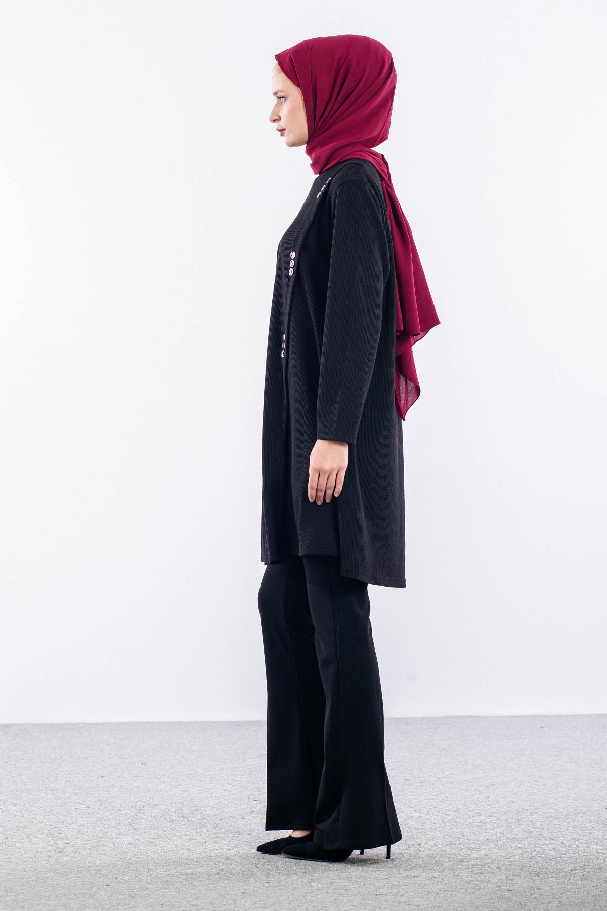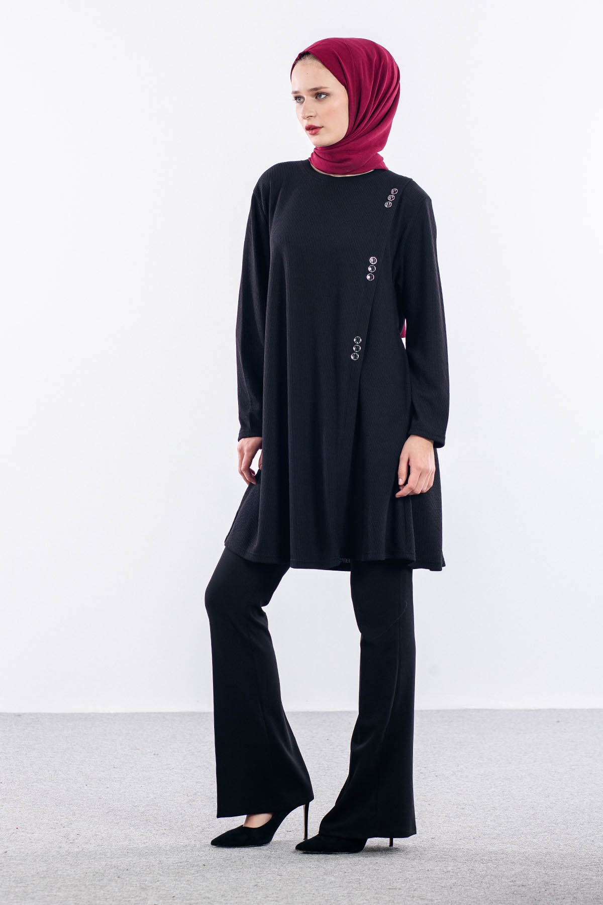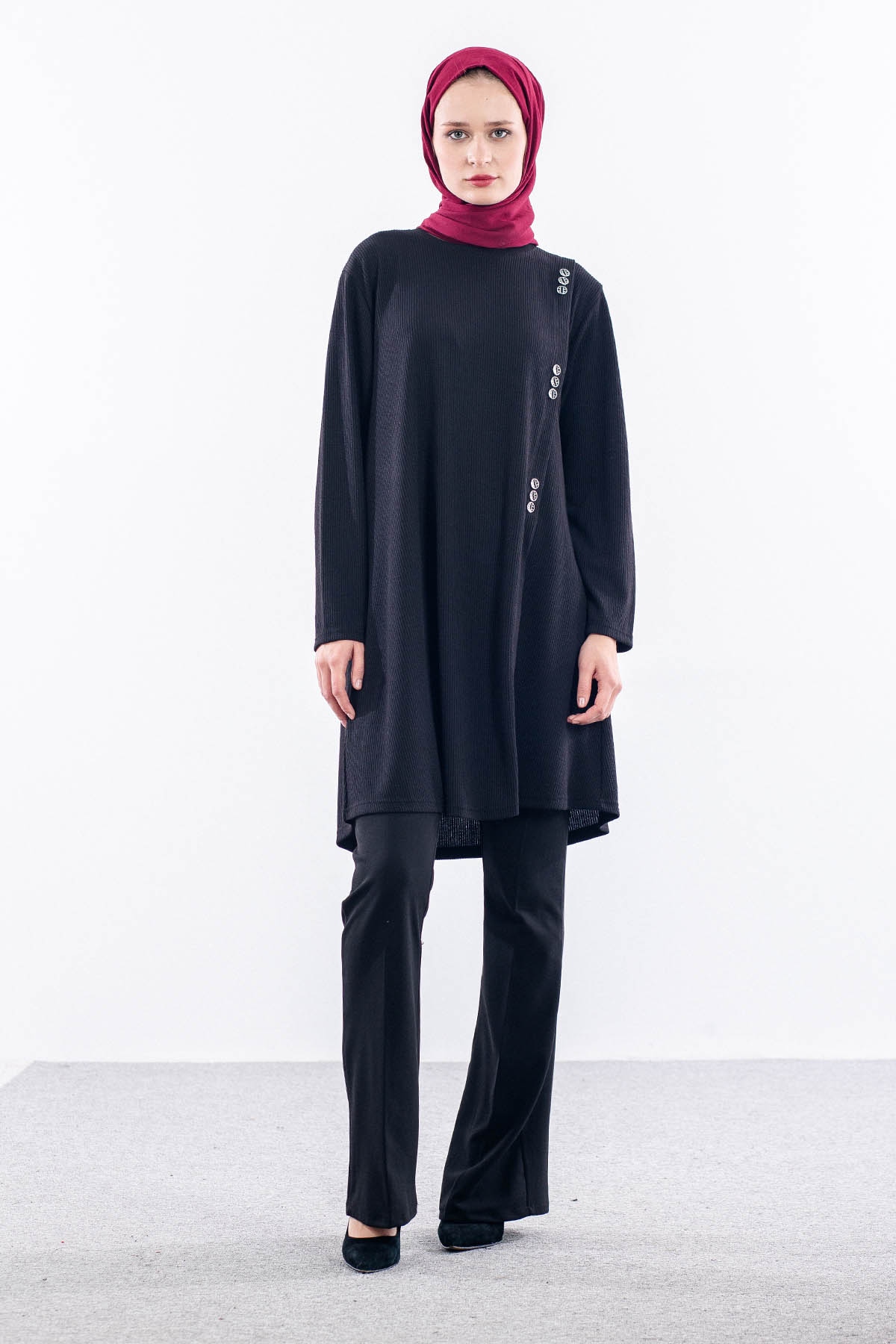 3501 Duğmeli̇ Tunik 46-54 - Siyah - 3