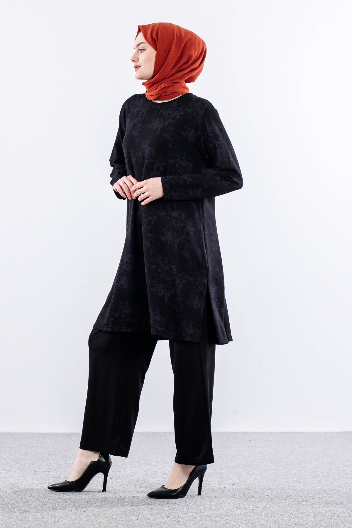 3531 Tunik 46-54 Desenli - Siyah - 1