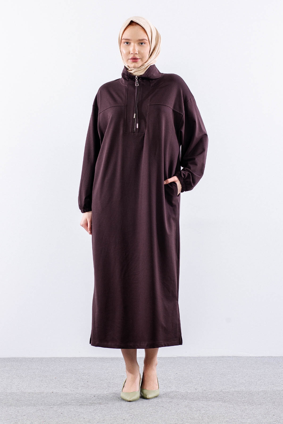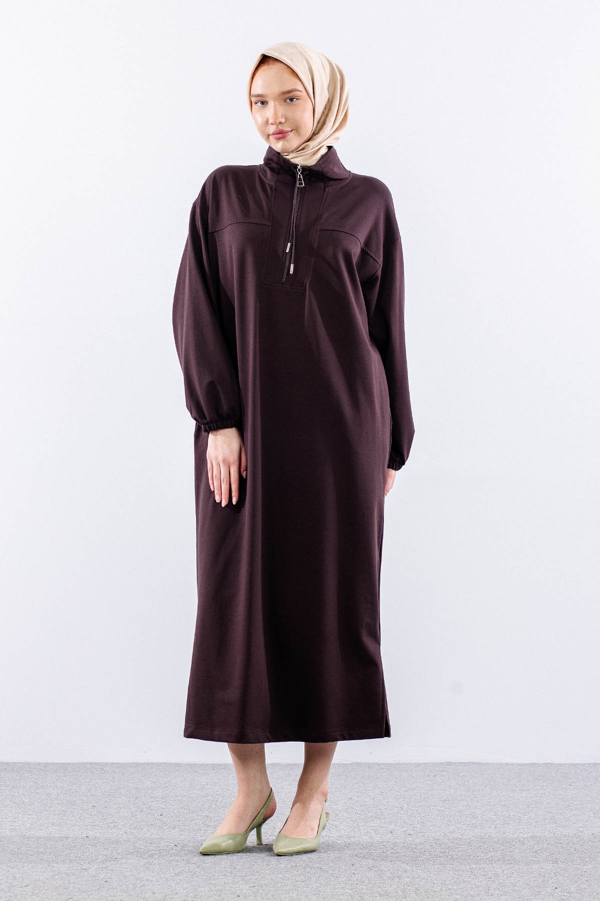 35742 Elbise Tek Keşık Detay - Kahve - 1